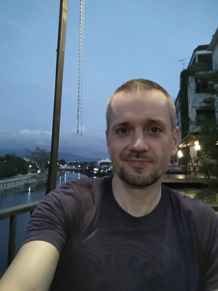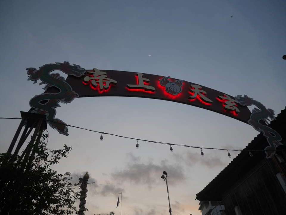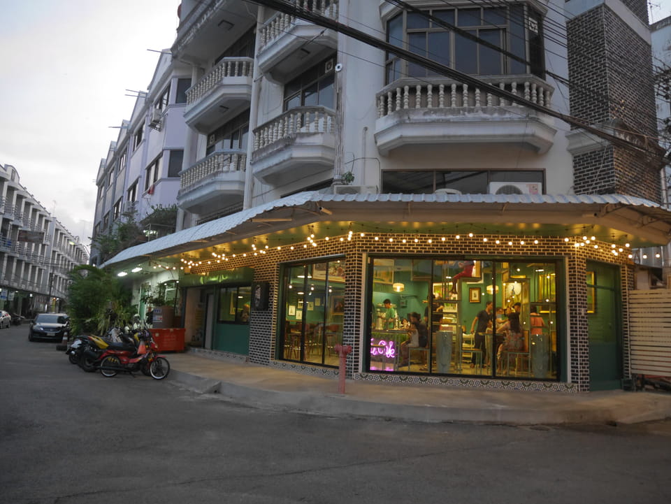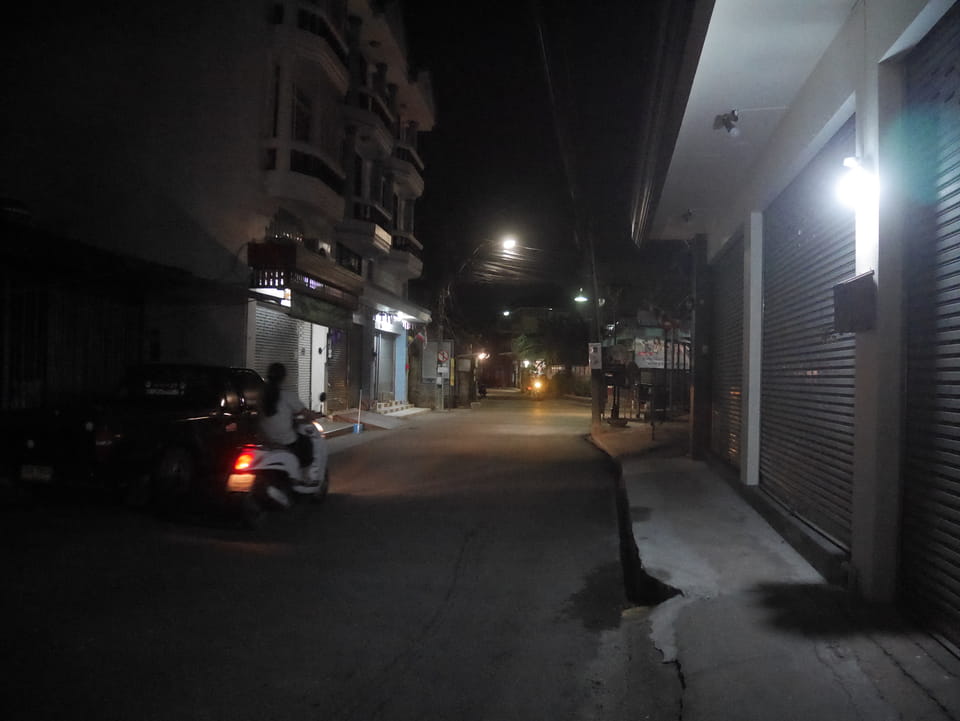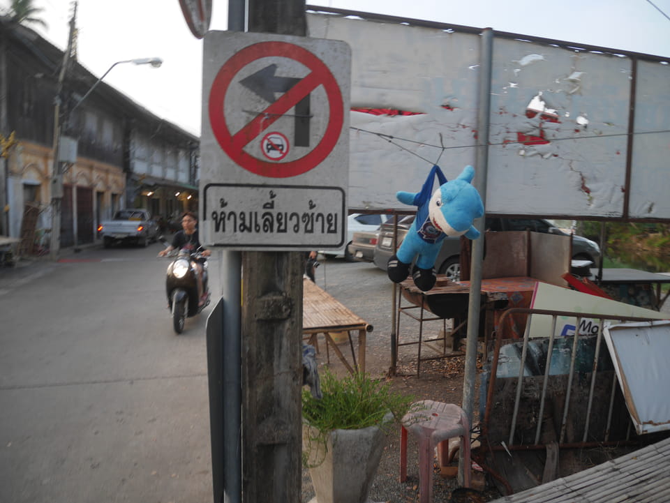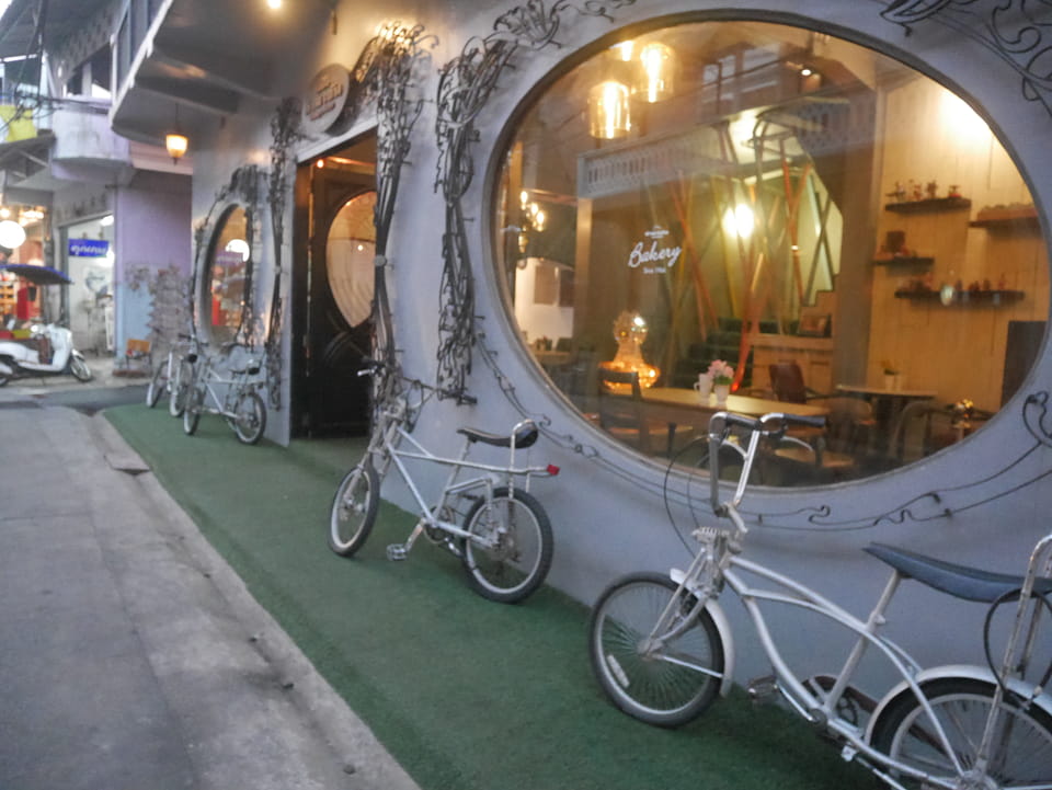 Alles ganz nett und auch nur mit warmen Kühlakku zog die Osmo heute die knapp 40′ ohne KO durch. Ich war dagegen echt fertig, durchsgeschwitzt im Saunawetter. So kehrte ich mit dem Sonnenuntergang in ein Café ein, was ich vorher schon gesehen hatte. Dort setzte ich mich auf die Terasse, bestellte zwei Sachen und genoss den Abend. Das Essen ganz gut, blauer Reis und blaue Limo zur blauen Stunde. Es wurde finster ich satt und zahlte die doch etwas hohe Rechnung von 244 THB.