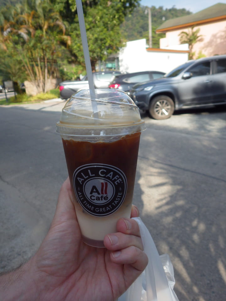 Bei 7-11 dann holte ich mir einen Ice Macciato und was zu essen. Knapp 100 THB. Ein Russe stolperte in den Laden und rief „Water Water Water“. Die Thai wussten nicht so recht, wie man darauf reagiert – ich verwieß ihn auf die Kühlschränke – wie eben in jedem Laden hier.