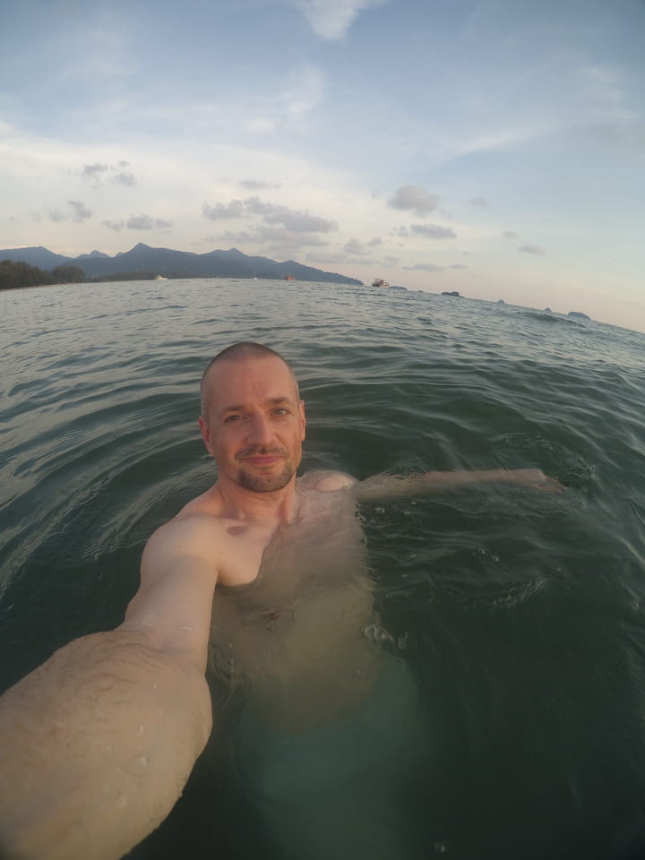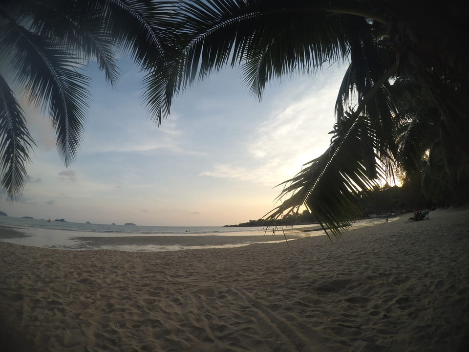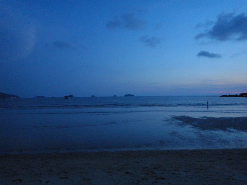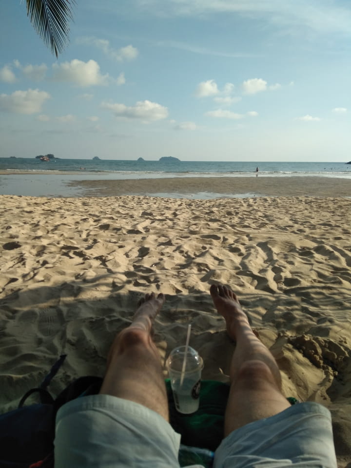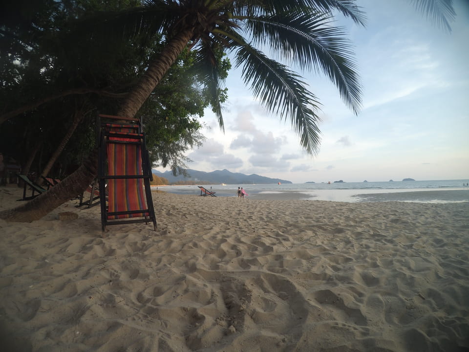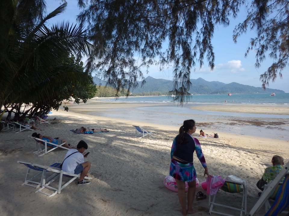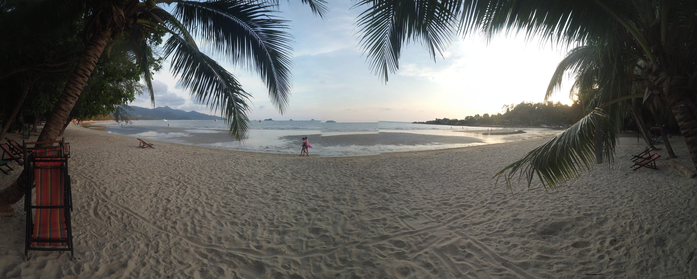 Am Strand war’s entspannt. Ich lief nicht so weit, legte mich unter Palmenschatten und videophonierte mal mit zu Hause. Das Ladegerät war da auch nicht. Ich denke mal in Bangkok blieb es hängen, habe eine Erinnerung, dass ich das irgendwohin legte. Gut – Ersatz käme auf ca. €14, wenn ich’s überhaupt brauche. Nur am Strand nehme ich ja die Yi. Zu viel Fisheye brauche ich ja nicht.