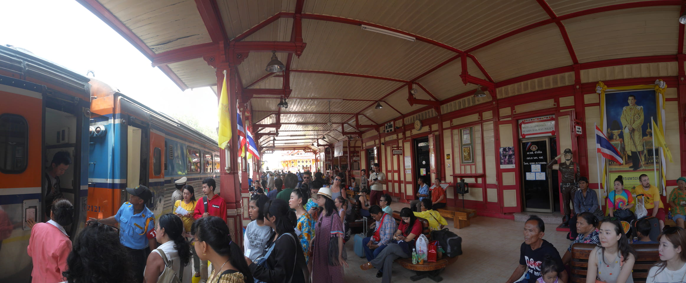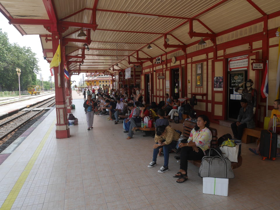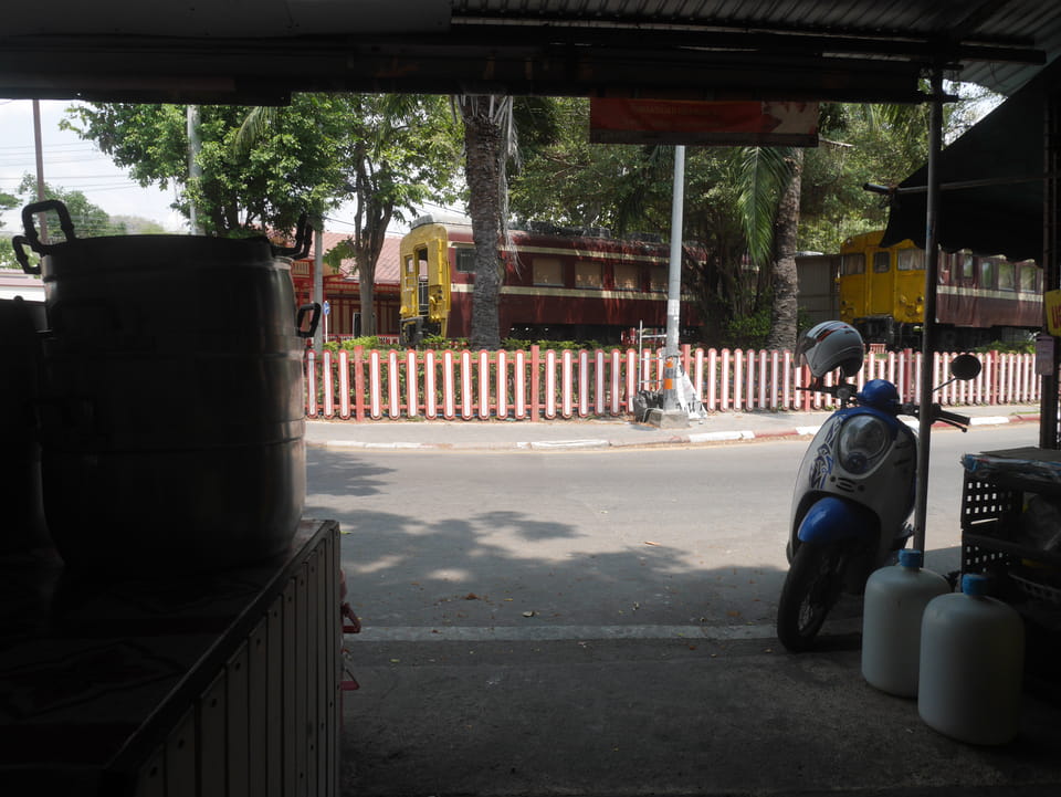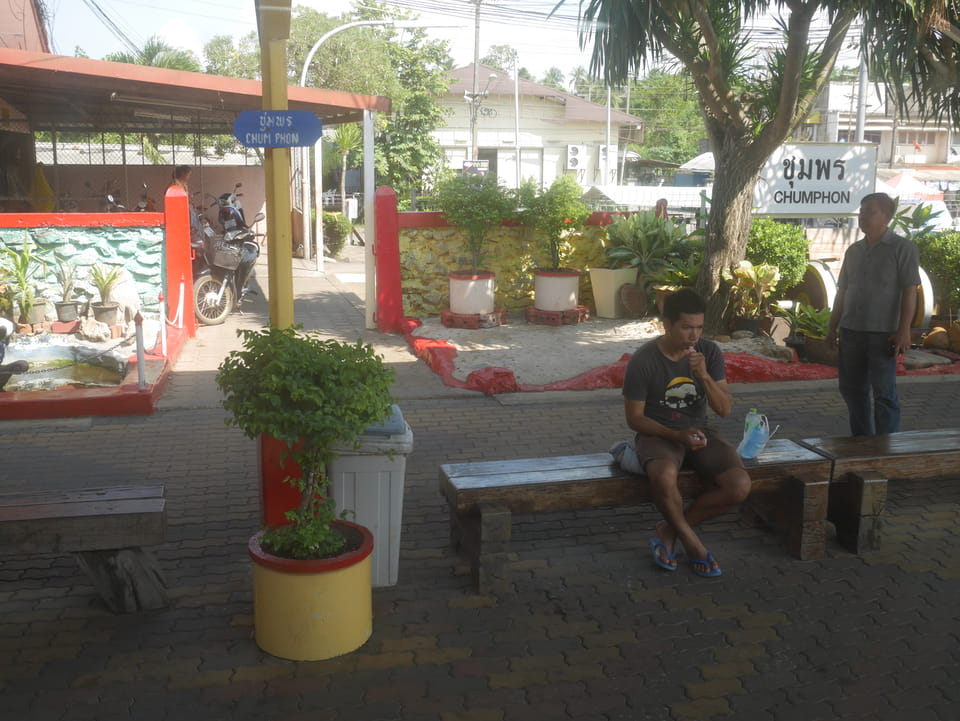 Einen Block später fand ich ein Moto-Taxi, der mich für 40 THB die 5’ zum alten Bahnhof brachte. Die alte Station von Hua Hin hatte ich bisher nur auf Photos gesehen. Jetzt kaufte ich mir eine Fahrkarte nach Surat Thani, der Endstation, für 490 THB. Noch viel Zeit bis zur Abfahrt 11:29 nach Plan. Ich ging also noch was essen und lud mir ein paar Baht auf die SIM Karte.