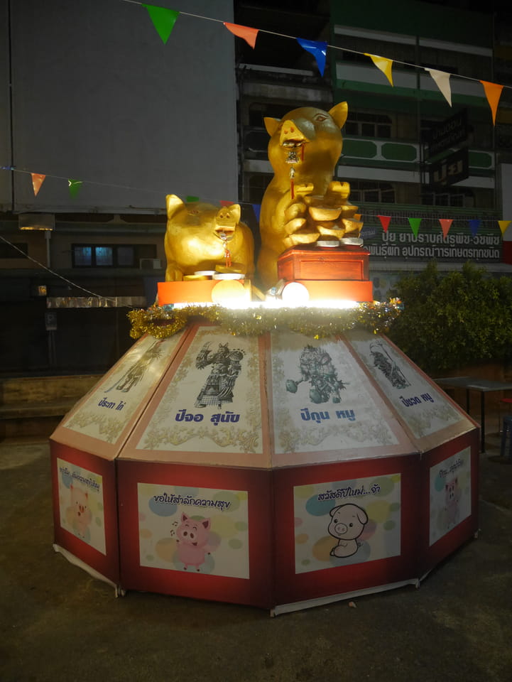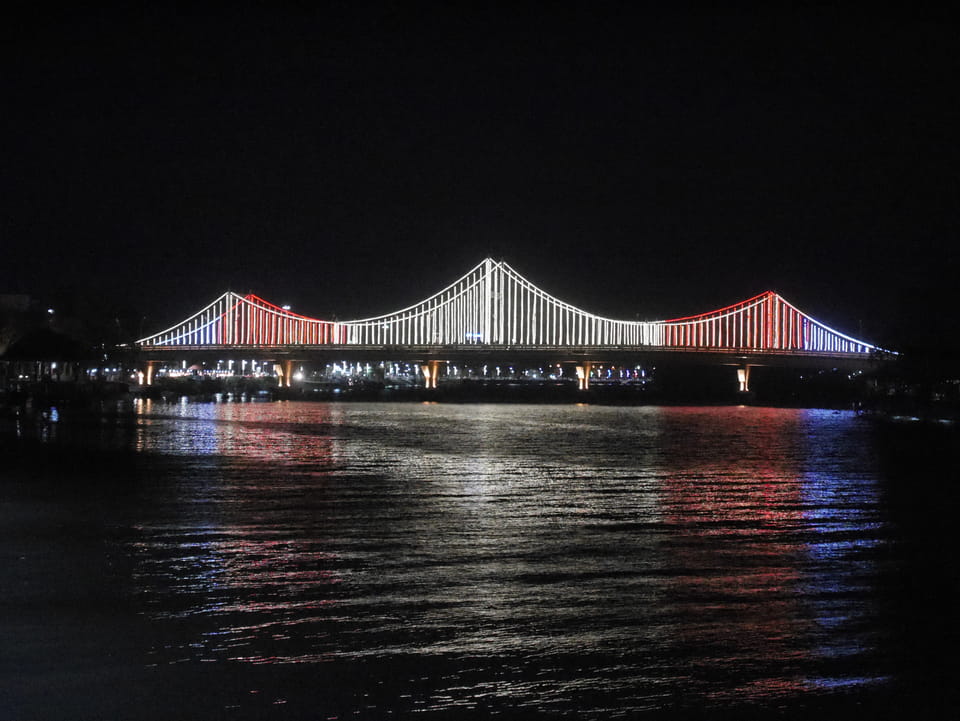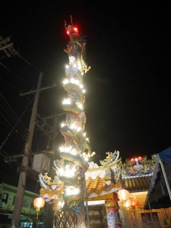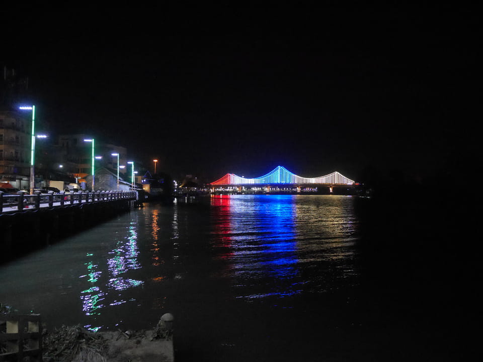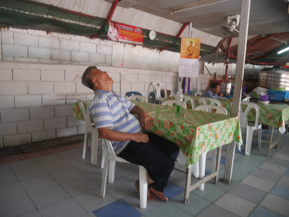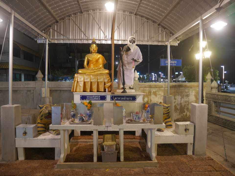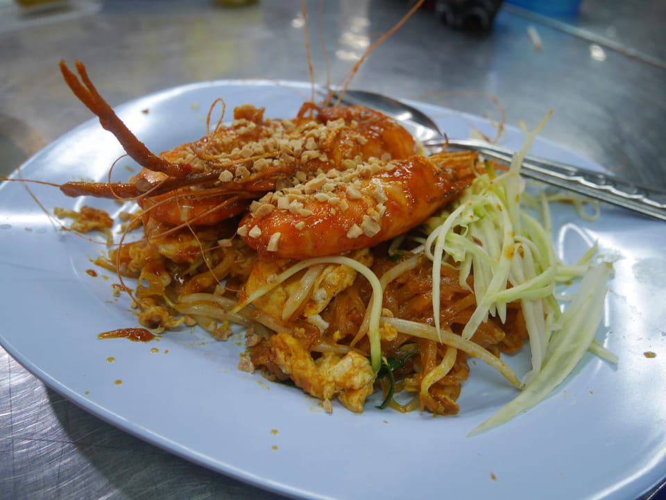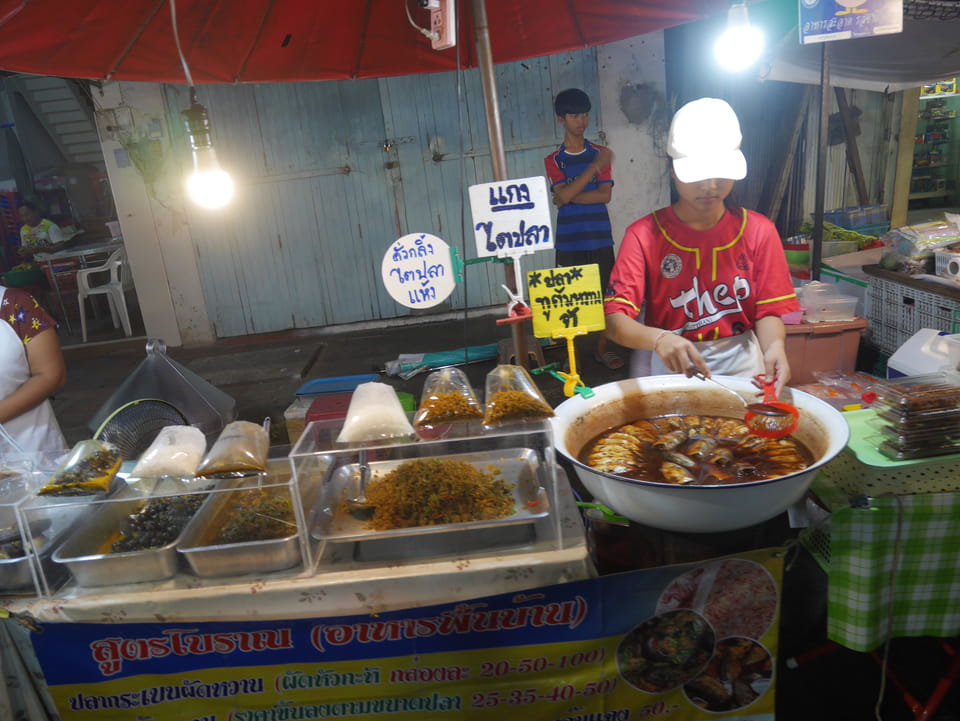 Weit nach Sonnenuntergang kam ich erst in’s Zentrum, drehte eine Runde über den Nachtmarkt und am Wasser entlang. Eine nette Atmosphäre mit Fitness/Tanzgruppe und eben typisch lokaler Thai Atmosphäre. Als ich die ca 25’ Video im Kasten hatte, wollte ich was essen. Ein Typ schüttelte Thai untypmisch die Hand und machte Druck zur Bestellung. Also OK – Shrimp Pad Thai. Dann nebenan noch ein Lime Soda. Das Limonen Wasser kam 50 THB, was ungefähr das Doppelte des normalen Preises ist. Der Typ dann wollte nicht diskutieren und OK, kann ich verschmerzen. Das Pad Thai auch 50 THB was OK ist, nur war die Qualtät mies. Das schlechteste Pad Thai mit harten Nudeln und lieblos ungerupften Shrimps. Leicht mürrisch heute wollte ich den anderen Touris vom Laden abraten aber naja, lies es dann doch.