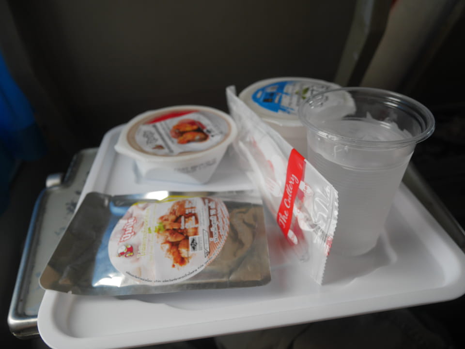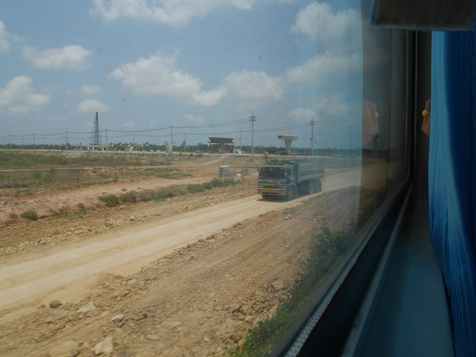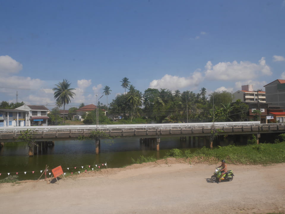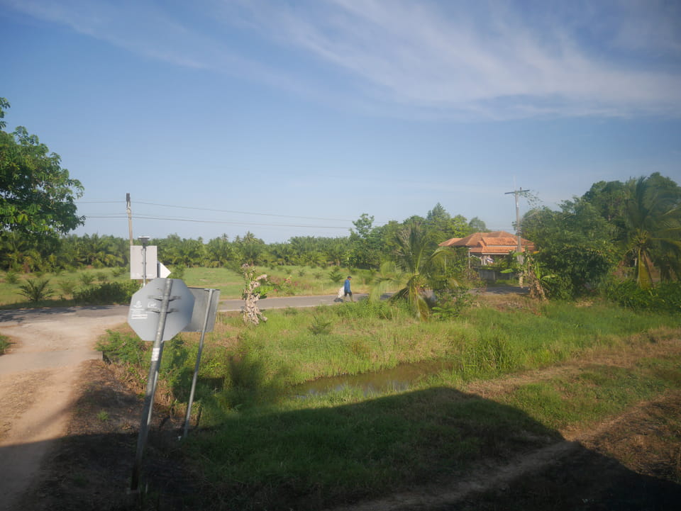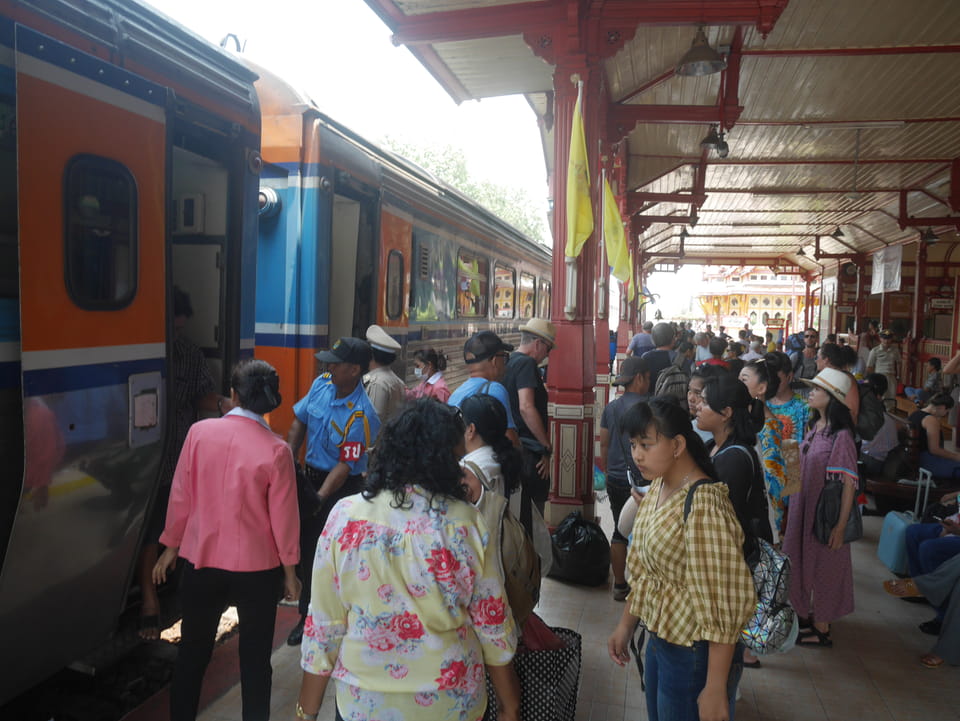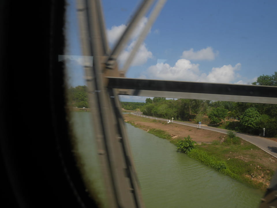Der Zug kam schließlich, war kurz und wurde entsprechend voll. Es wurde sogar nochmal ein Mittagsessen gereicht. Nun war ich wirklich satt. Zufrieden tuckerten wir durch die Landschaft. Kleine Orte in Thailand, große Palmenwälder. Viel Grün noch vor dem Start der Regenzeit.