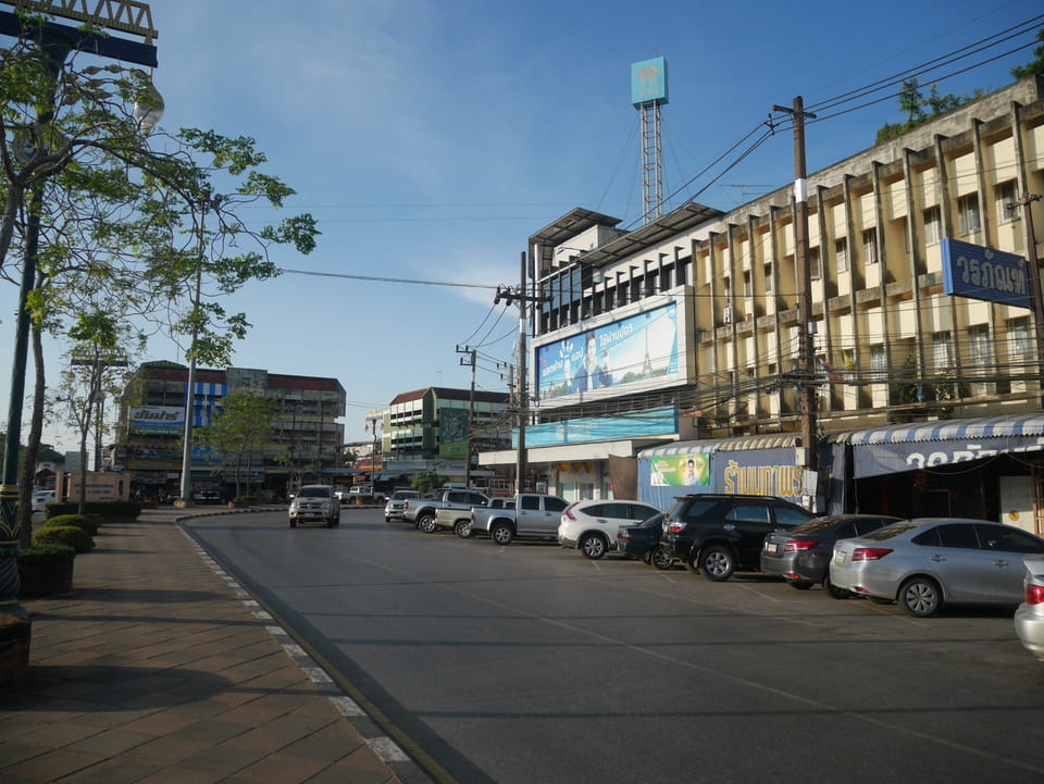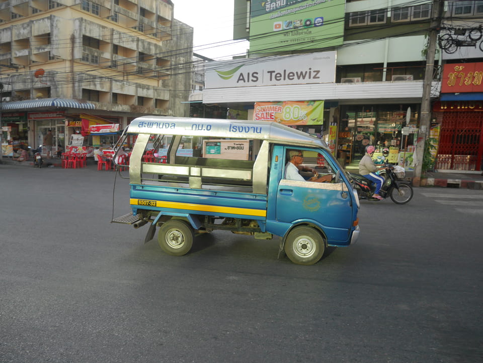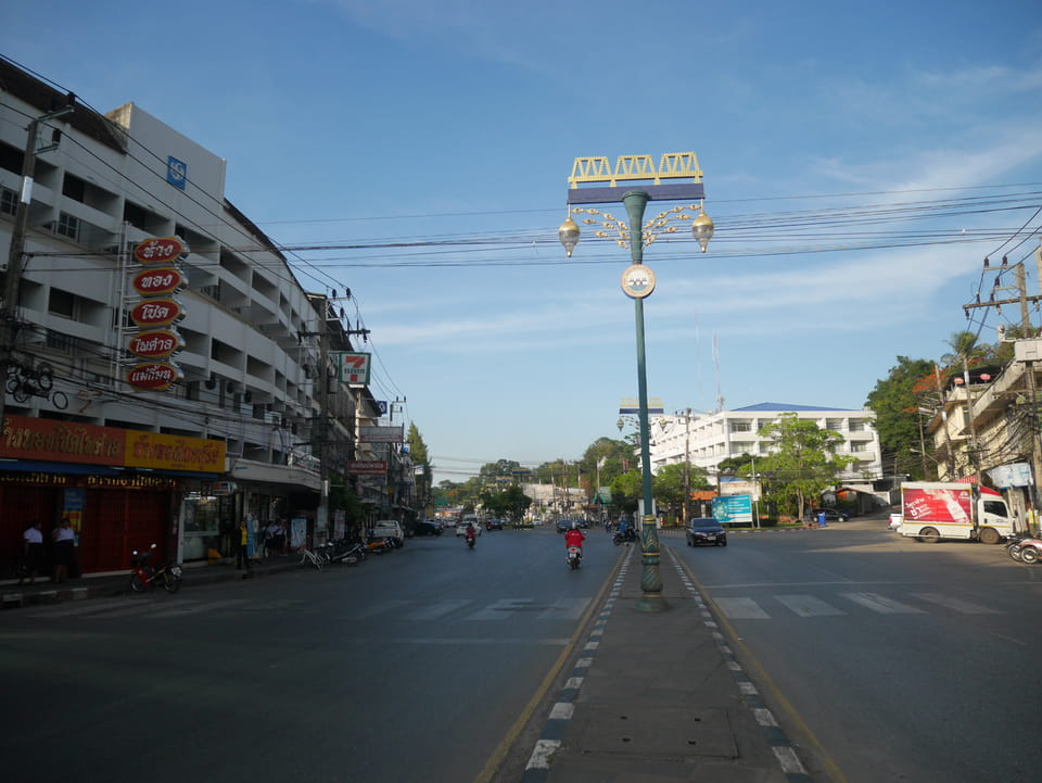 In Surat Thani dann ist der Bahnhof weiter vom Stadtzentrum entfernt. Ich ging erst mal los, hoffte auf ein Mototaxi. Eins hielt schließlich an und ich zeigte die Adresse meines Hotels. Ein Songthaew hielt daneben und das sollte ich nehmen. Drinnen waren ein paar bekannte Gesichter. Eine Belgische Familie mit einer Tochter war das erste Mal in Thailand und auch im Zug gekommen. Sie waren auf dem Weg nach Koh Lanta, was ich noch nicht kannte. Chanthaburi kannten sie auch.