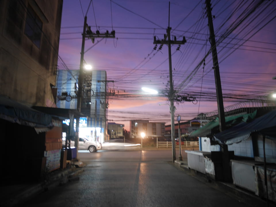 Mein Zimmer war echt gut für den Preis von ca. 400 THB – Klima und Balkon. Surat Thani hat ansonsten wenig zu bieten, was aber auch mal OK ist. Das Internet wackelte leicht, doch ich konnte bissel was checken. Für das Video des Tages wollte ich aber zum Nachtmarkt und dann war’s schon arg spät.