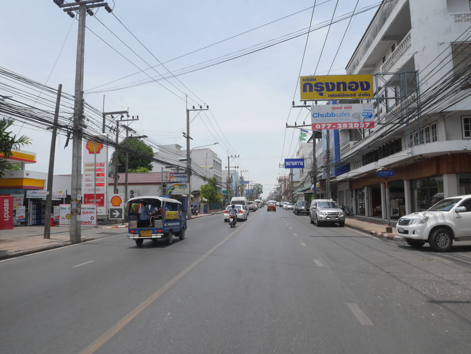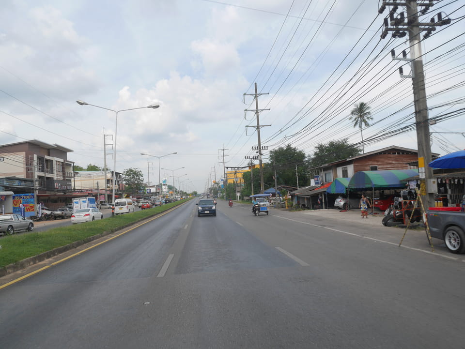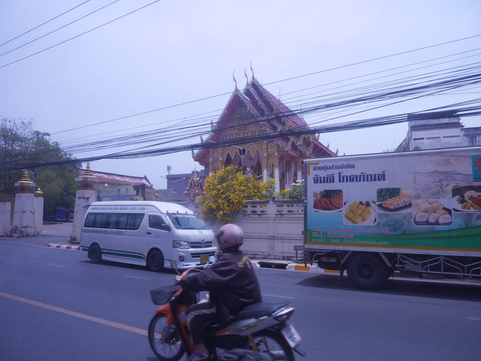 Nach einer langen Fahrt schließlich kam ich am Yellow Sun Guesthouse an. Nicht ganz so leicht zu finden mit dem versteckten Eingang. Nur ein Ventilator-Zimmer in der Hitze. Wegen der Erkältung ist das vielleicht doch besser, oder wenigstens billiger. Für 400 THB/Nacht ein guter Preis für die Gegend. Richtig zufrieden war ich nicht. Die Laune leidet mit der Erkältung halt etwas. Wenigstens das Internet hatte Top Speed, sodass ich die offenen Videos hochladen konnte.