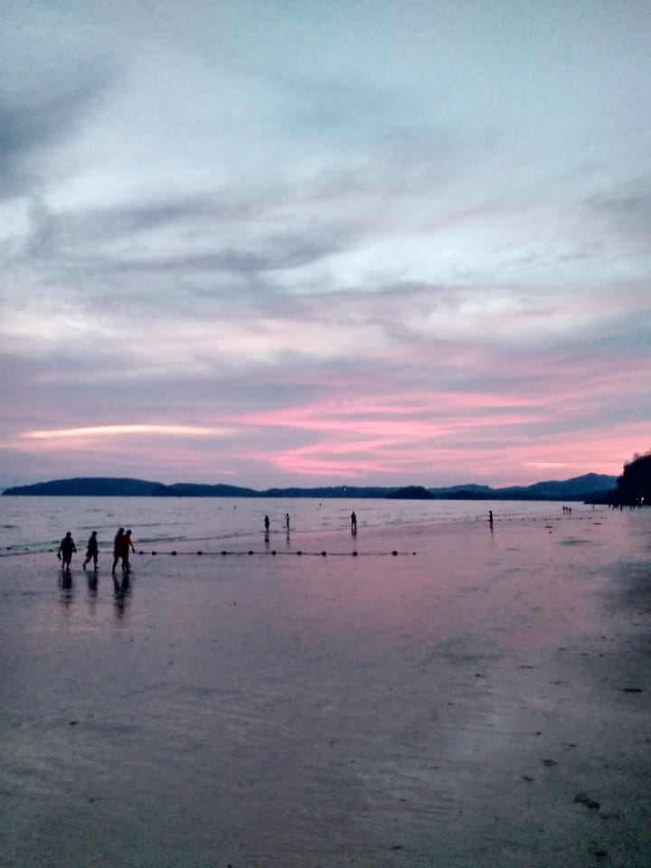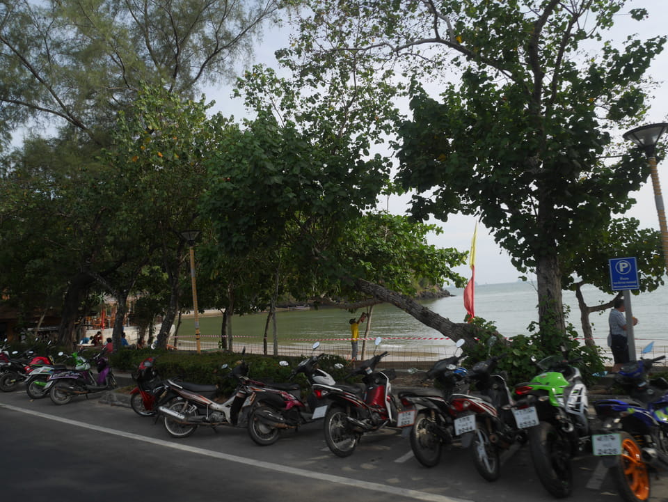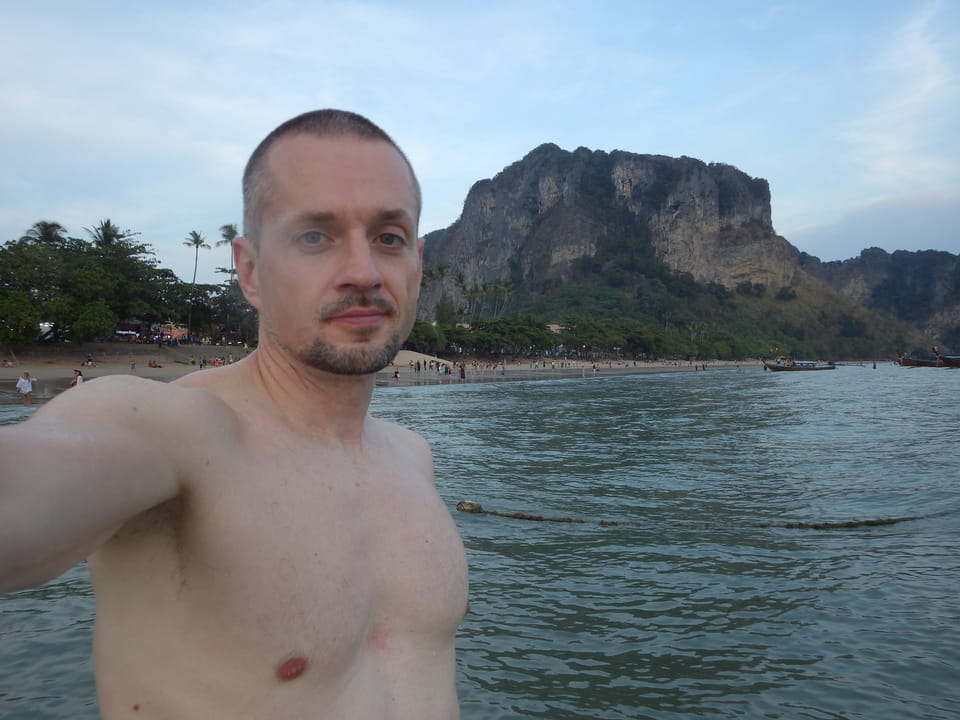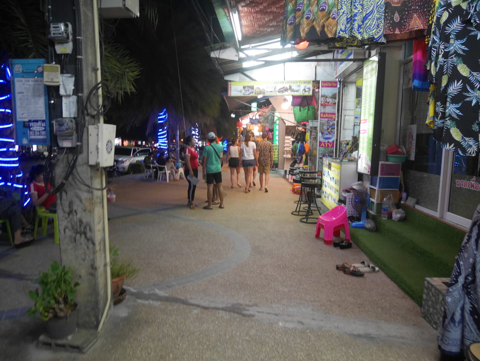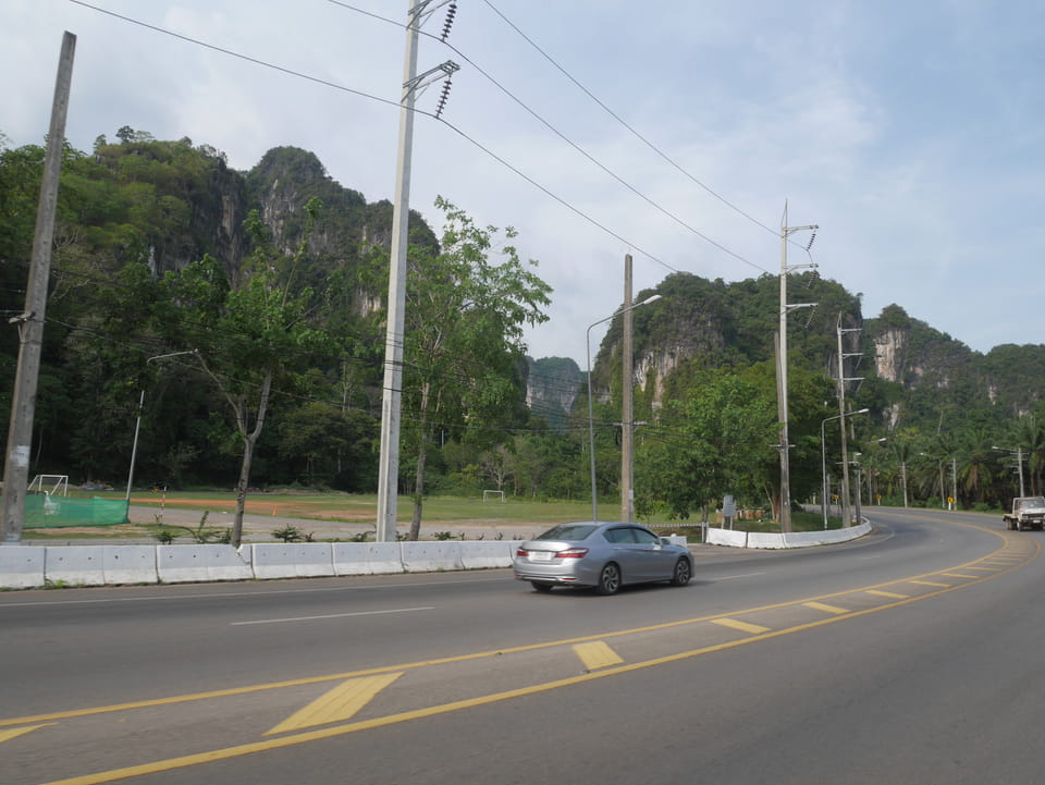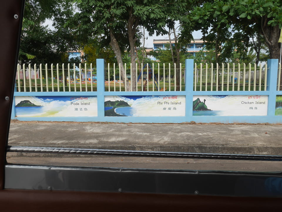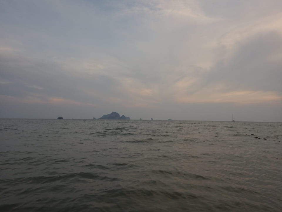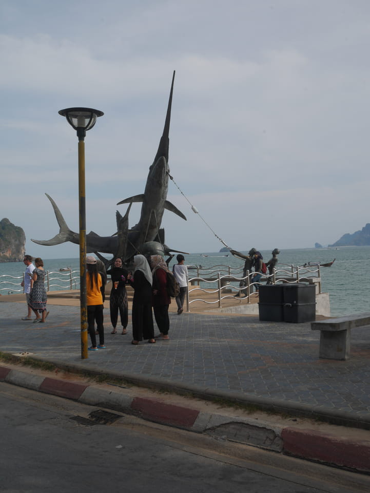 Im Van war ich wohl auch wieder der Einzige, der nach Ao Nang fuhr, denn außerhalb von Krabi Town wurde ich in einen Songthaew umgeladen. Der fuhr erst nach Krabi Town, wie ich es kannte und wartete da an einem 7-11, in dem ich vor Jahren auch mal einkaufte. Die Karre wurde volll. Erst, als auch die Trittbretter belegt waren ging’s los. Ein paar Spanier wollten zu einem Pier., der dann aber doch nicht der richtige für Railey Beach war. In Ao Nang gibt’s da mehr Zubringer. Ein paar Deutsche / Österreicher waren das erste Mal hier. Sie wollten den Strand sehen, der in Ao Nang zwar schmal ist aber durch die Länge selten überbelegt.