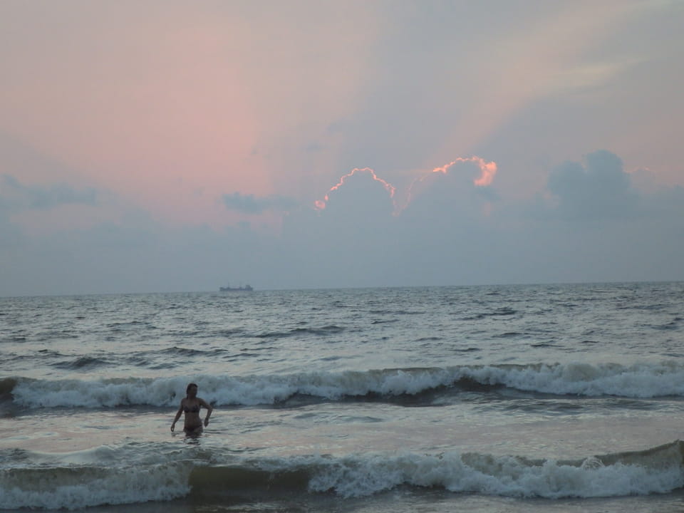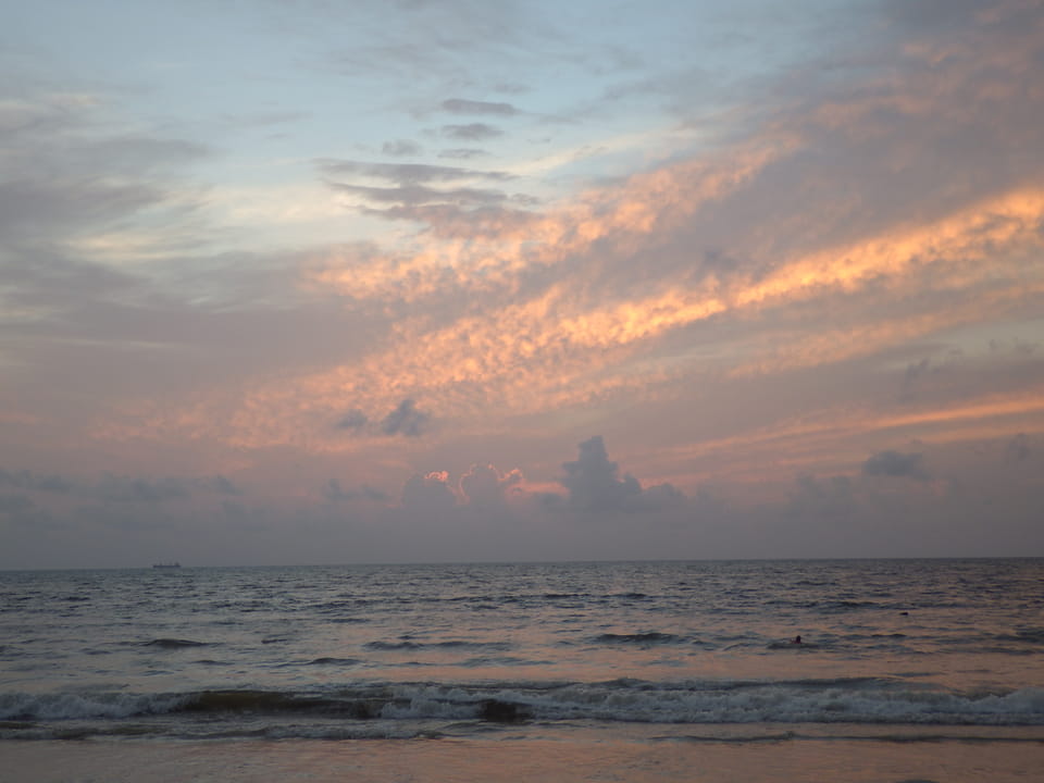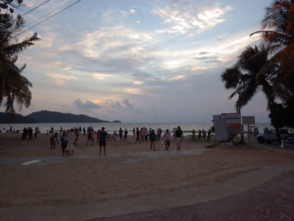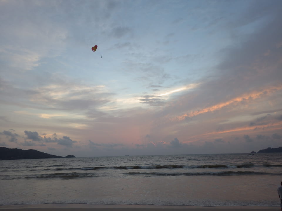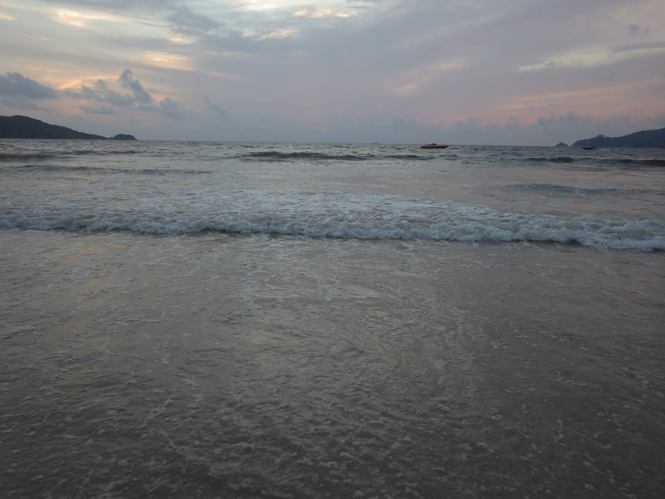 Abends schaffe ich es doch noch runter zum Strand mit meiner neuen Badehose aus KL. Ein paar Quallen lagen im Sand, was mich leicht abschreckte. Das Wasser zum Sonnenuntergang war aber nett. Schon gut mit ein paar Wellen heute..
