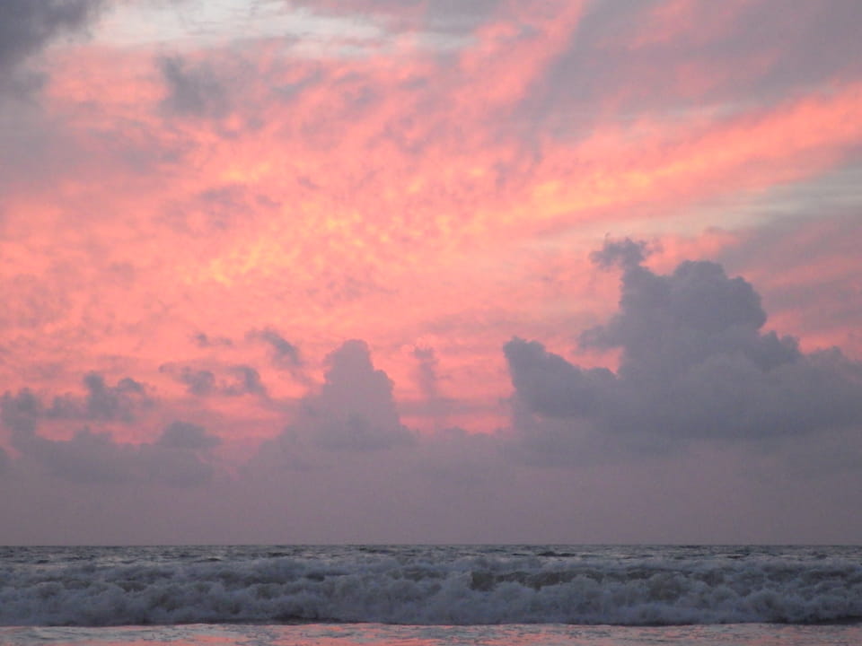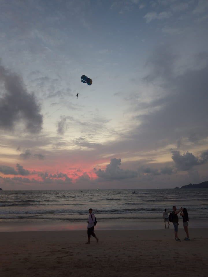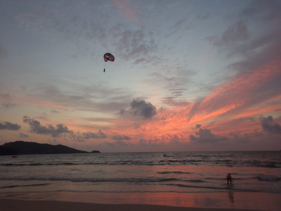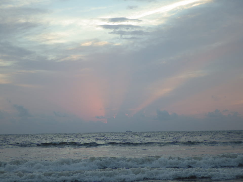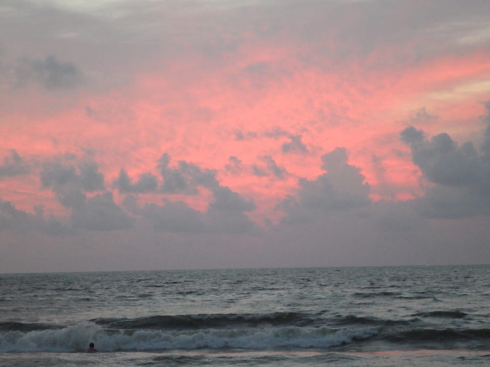 Abends schaffe ich es doch noch runter zum Strand mit meiner neuen Badehose aus KL. Ein paar Quallen lagen im Sand, was mich leicht abschreckte. Das Wasser zum Sonnenuntergang war aber nett. Schon gut mit ein paar Wellen heute..
