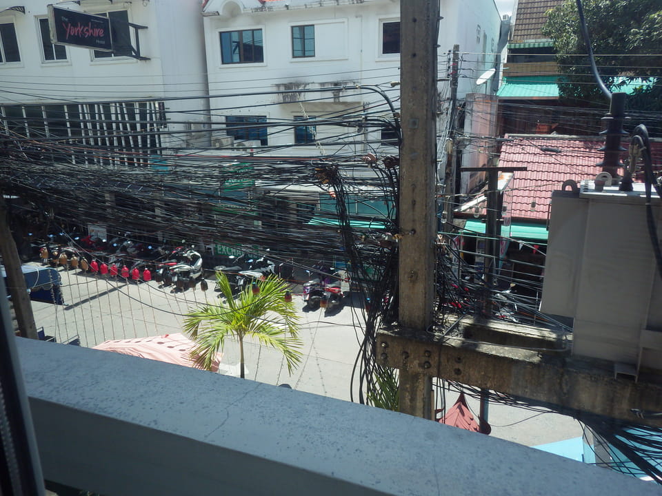 Die Fahrt zuckelte sich nur langsam durch die Pampa – auch wegen Staus. Dann kamen wir endlich in die Berge und auf halben Weg bei Krabi Center wurden 30 THB Geld fällig. Mangels Schlaf war ich etwas gereizt durch zwei Spanier, die laut und permanent plapperten. Das Spanische klingt in Südamerika besser aber hier legte einer seine Füße auf den Mittelsitz – naja, was eben mein Schlafentzug mich verstimmt.