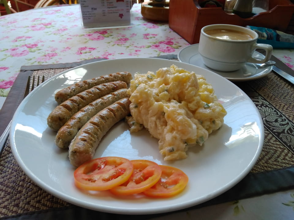 Ich bestellte mir für 120 THB ein paar Nürnberger Würstchen mit Kartoffelsalat. Heimweh habe ich nicht aber in Nürnberg damals waren mir die zu teuer. Schon mal nett, nach über einem Monat Reis und Nudel wieder Kartoffelsalat zu essen. Sogar Tomy Senf hatte man hier. Man kann den Mann aus Deutschland nehmen aber Deutschland nicht aus dem Mann. Der Spruch geht mit allen Ländern und besonders erinnere ich mich hier an die Inder mit ihren Füßen.