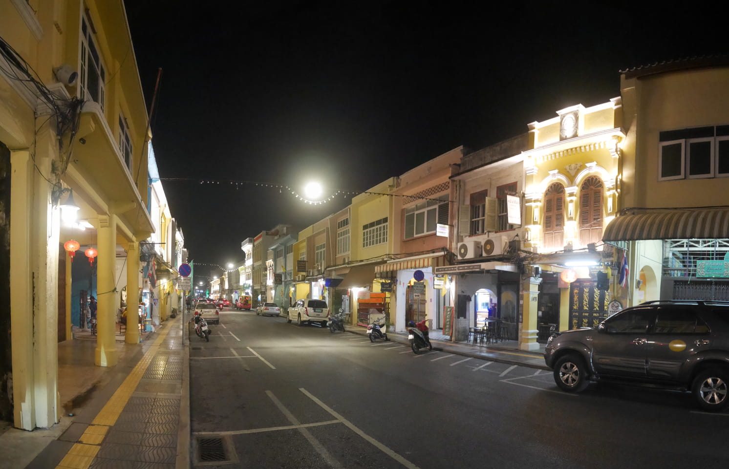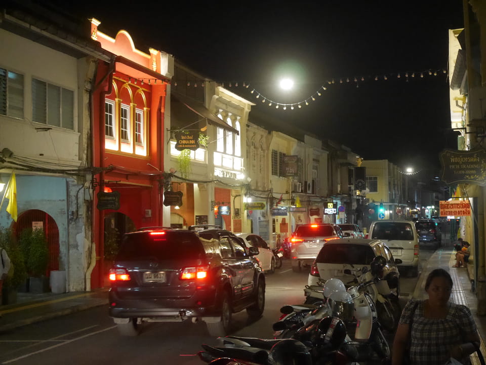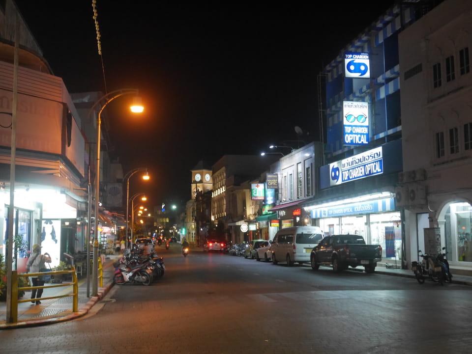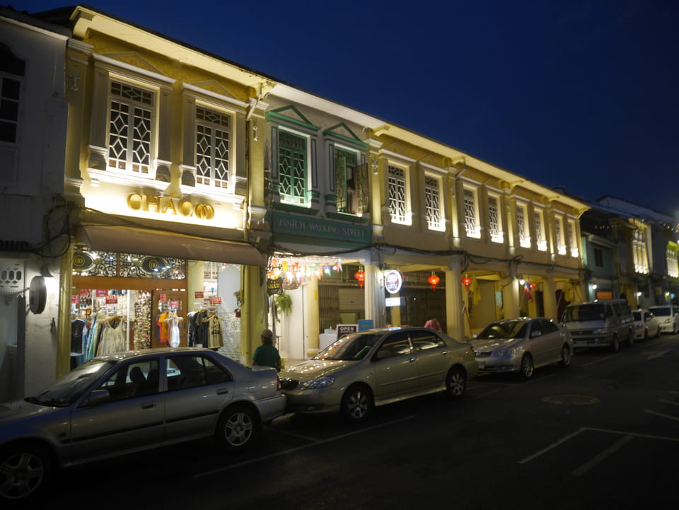 Mich überraschte die nette Atmosphäre der Stadt. Damals 2006 dachte ich, wir wären hier gewesen aber das war doch Karong. Hier in der Altstadt standen wieder die chinesischen Shophouses. Alles war nett zurecht gemacht. Eine kleine Walking Street durch einen Block gab’s auch, wie ich gleich am Anfang fand. Die Leute da guckten erstaunt über meine Camera.