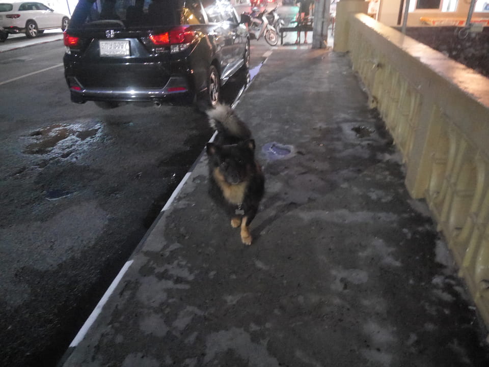 Die Tour ging gut voran und ich kam ganz am Ende zu einem Park. Da war ein Hund “Pikka?” sehr an meinem Fell-Micro interessiert. Das war witzig, die Besitzerin konnte ihn nicht zurück pfeifen, er ging mit mir mit. Ich beendete den Walk nach 40’ und ging dann zurück in’s Restaurant, wo der Hund herkam.