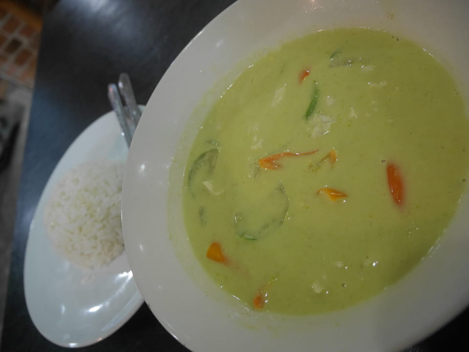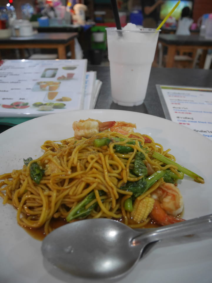 Zuerst ein paar Shrimp Nudeln, dann noch ein Grünes Hühnchen Curry. Dazu ein Cocos-Shake und dann noch Ananas hinterher. Es waren zwei Gerichte zum Abendessen und ich war entsprechend satt. Mit 260 THB aber immer noch annehmbarer Preis für das teure Phuket.