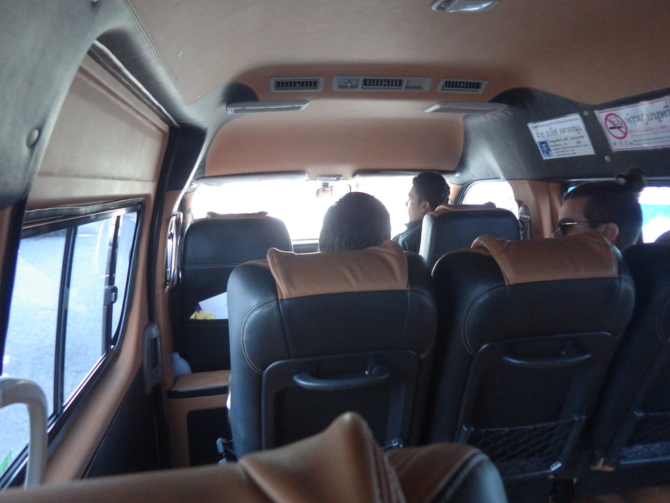 Ich wartete geduldig im Hostel auf meine Abholung. Dann kam der Thai-Fahrer gegen 11:30, hatte noch eine Zigarette im Mund, die in er in einem Bluemntopf parkte, weil er mal ganz dringend auf die Toilette musste.