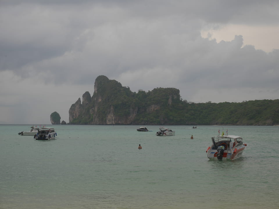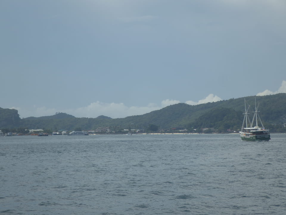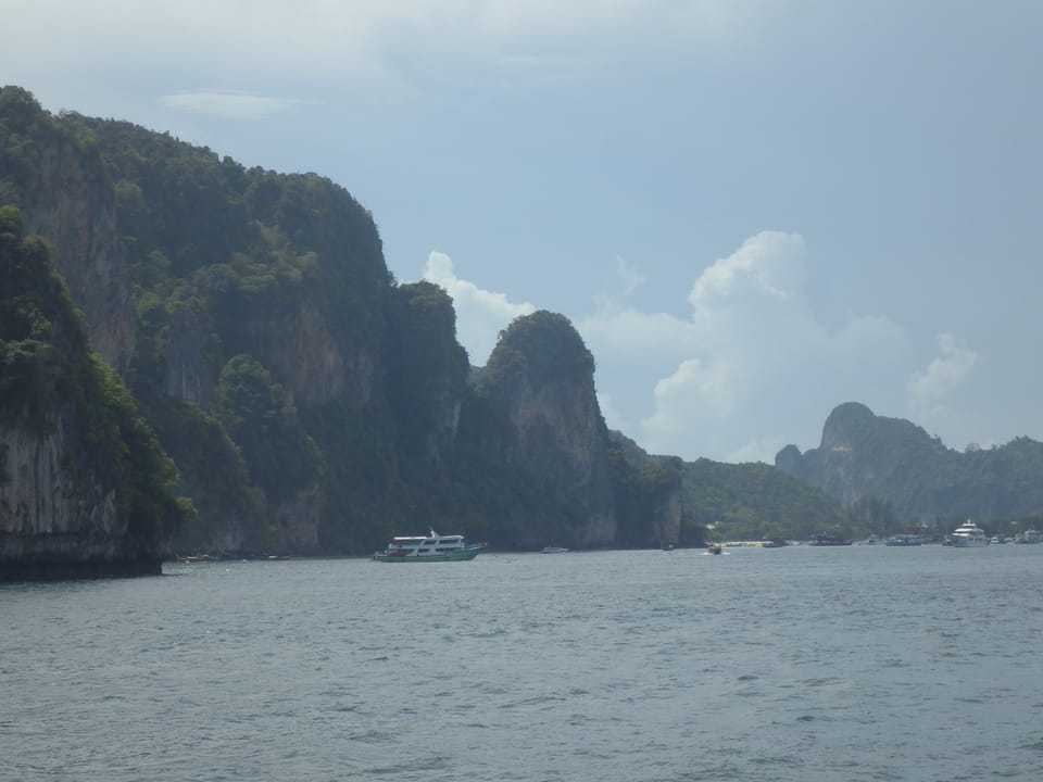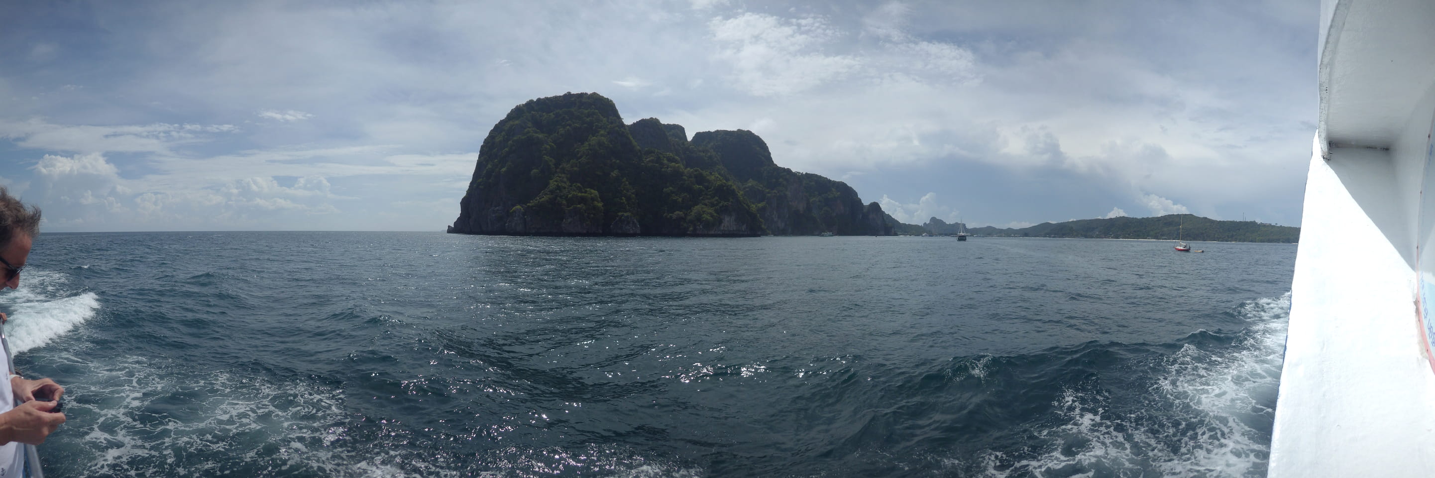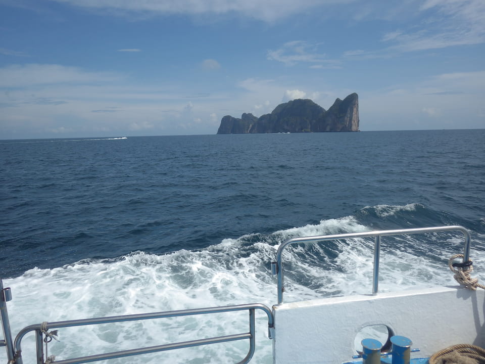 Dann in der Nähe von Phi Phi ging ich doch mal raus, knipste selbst dann nur mit der Pentax. Das Wetter war schön und wir waren da. Bis man auf Phi Phi reingelassen wurde, musste man 20 THB an einer Art Müll/Ökosteuer abdrücken. Dafür gab’s einen Papierwisch als Quittung – ironischerweise Müll.