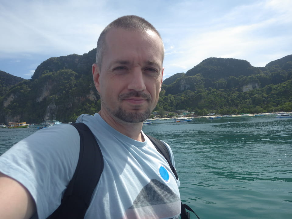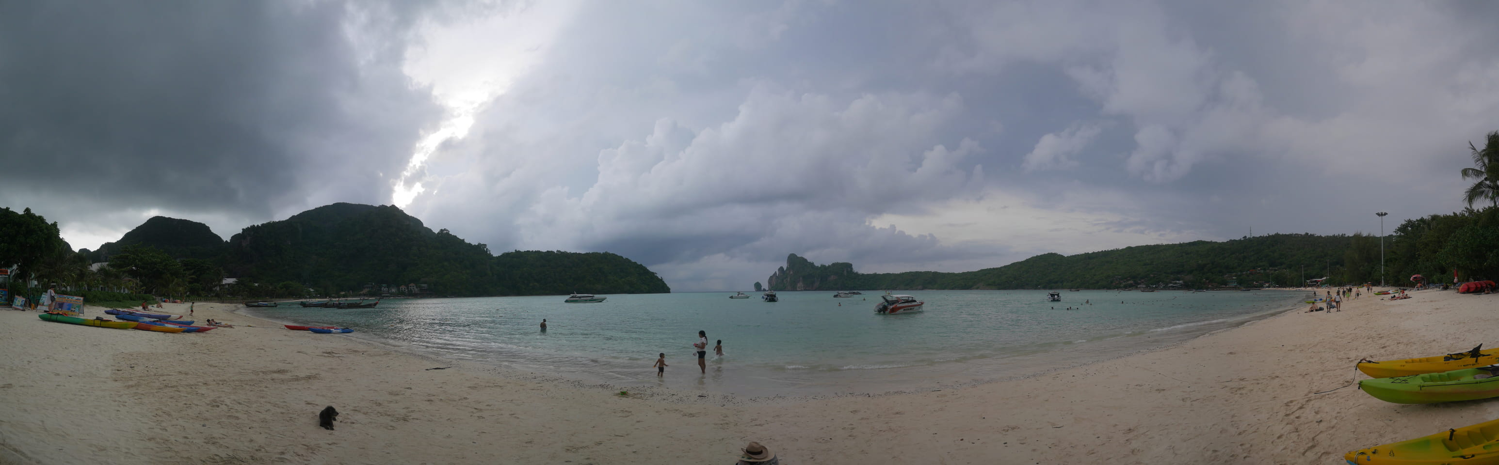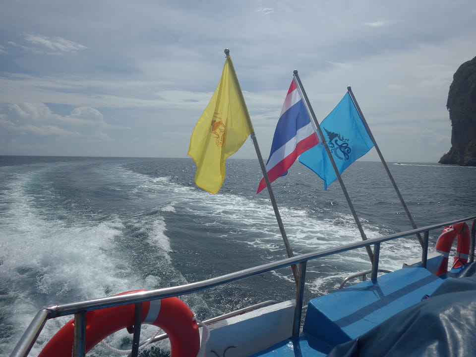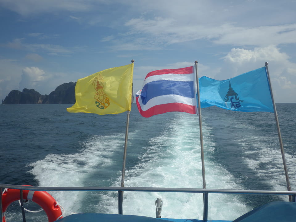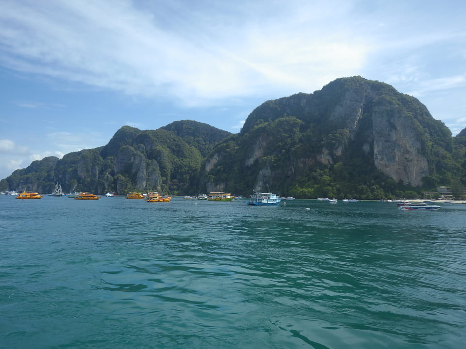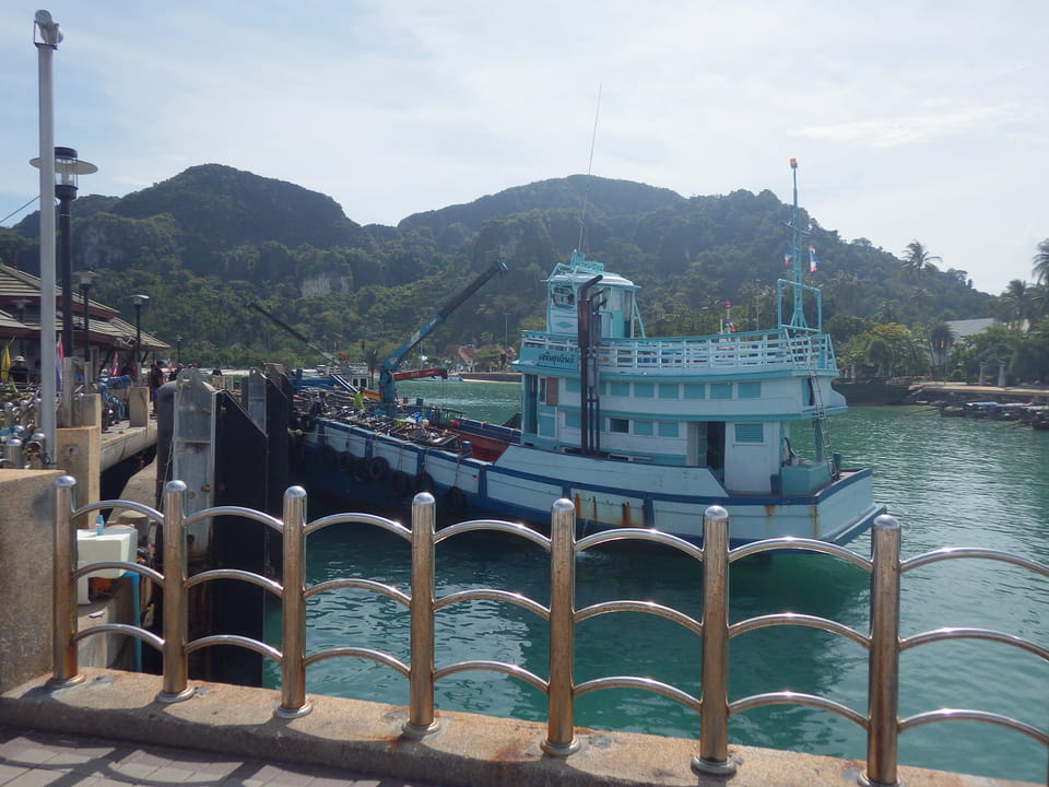 Dann in der Nähe von Phi Phi ging ich doch mal raus, knipste selbst dann nur mit der Pentax. Das Wetter war schön und wir waren da. Bis man auf Phi Phi reingelassen wurde, musste man 20 THB an einer Art Müll/Ökosteuer abdrücken. Dafür gab’s einen Papierwisch als Quittung – ironischerweise Müll.