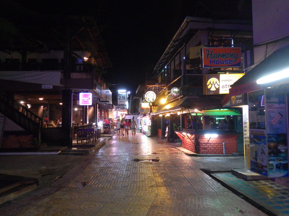 Nach dem langen Gewitter und etwas bedenken wegen der schlechten Vorhersage für morgen, drehte ich eine Runde. Unten am Strand dann in die Partygegend. Überall junge Leute, wie ich eben auch einst mal. Im Februar 2006 war ich das letzte Mal hier. So richtig erkenne ich da nichts wieder – zu lange für Erinnerungen. Damals war’s auch gerade ein Jahr nach der Tsunami 2005 her, vielleicht hat sich deshalb viel verändert. Erinnerungen verblassen.