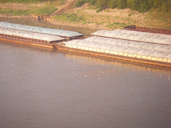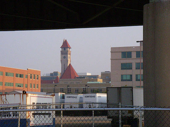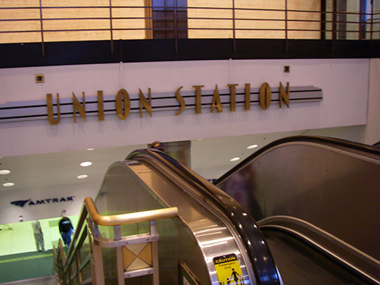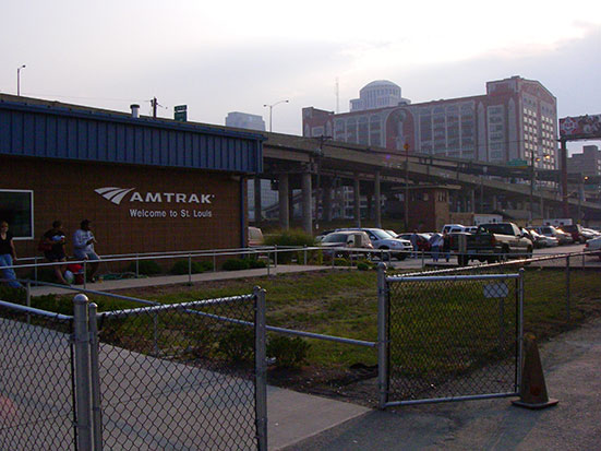 Gegen 7:00 wachte ich mit einem roten Sonnenaufgang an einem See auf. Das Zugpersonal machte auch eine Durchsage. Die Nacht war vorbei. „Get up. Get up.“ Vor St. Louis mit dem bekannten Bogen hatte ich Frühstück. Im Rstarant-Wagen gab es Käse, Ei und Wurst auf einem Bagel – dazu Kaffee.