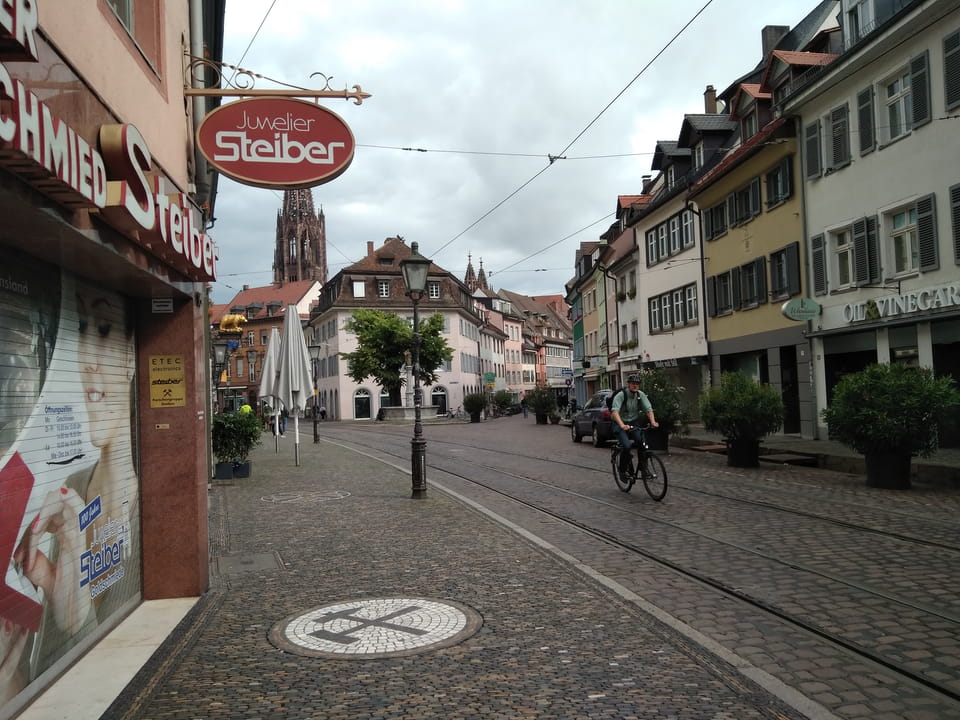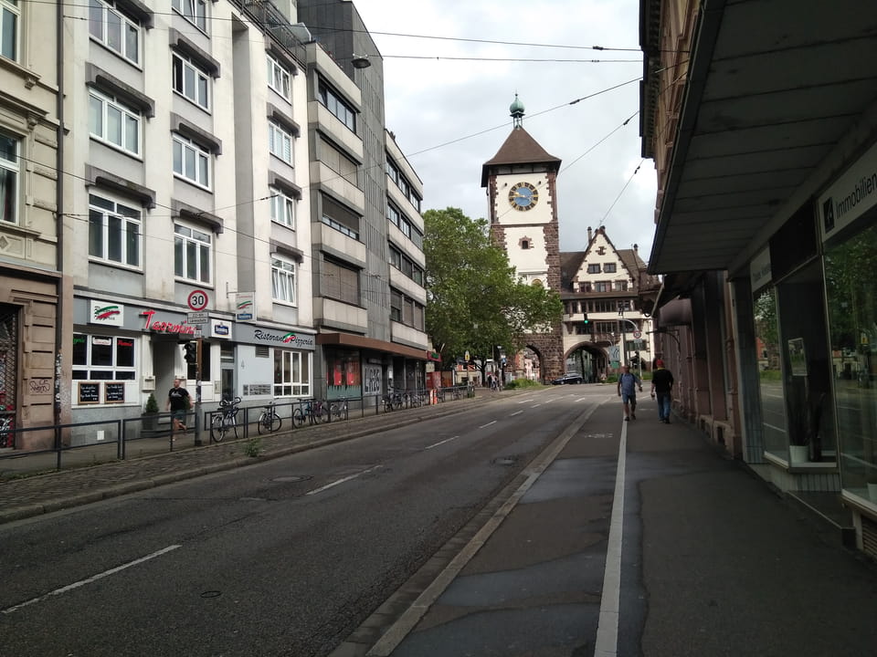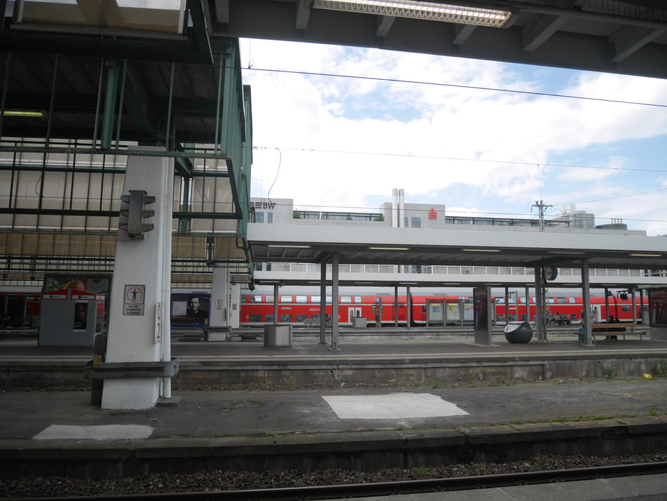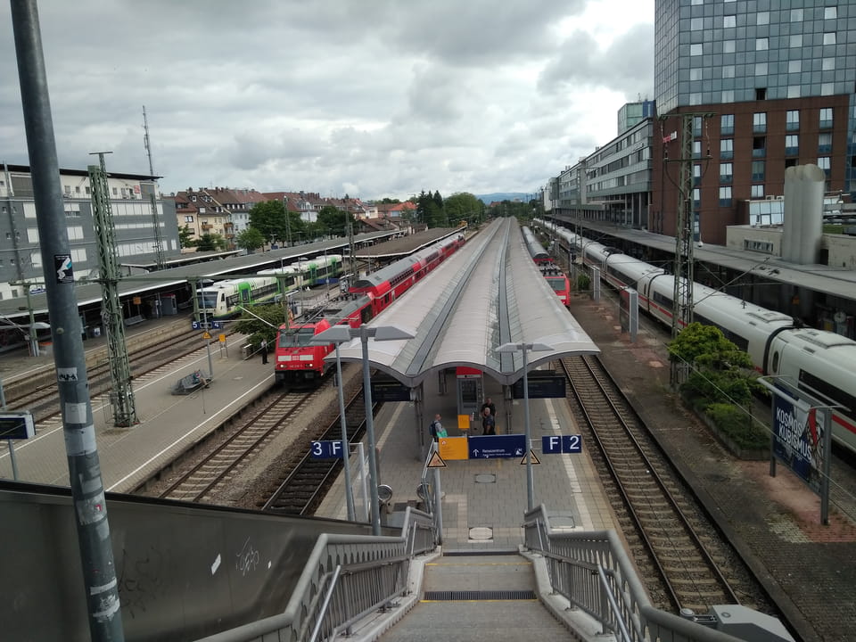 Zum Sonntag Morgen waren die Straßen in Freiburg ziemlich leer. Ich stampfte mit meinen schweren Sachen zum Bahnhof zurück. Mit der Straßenbahn wäre es kaum schneller gegangen – nur eine Haltestelle wäre drin.