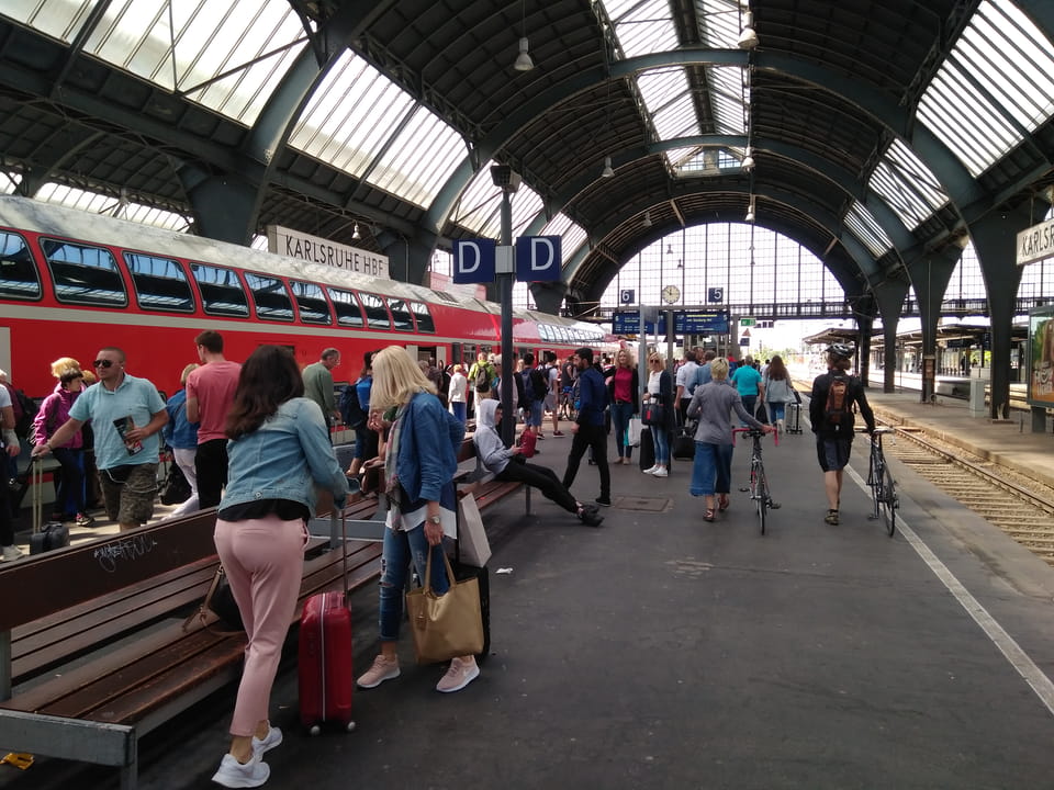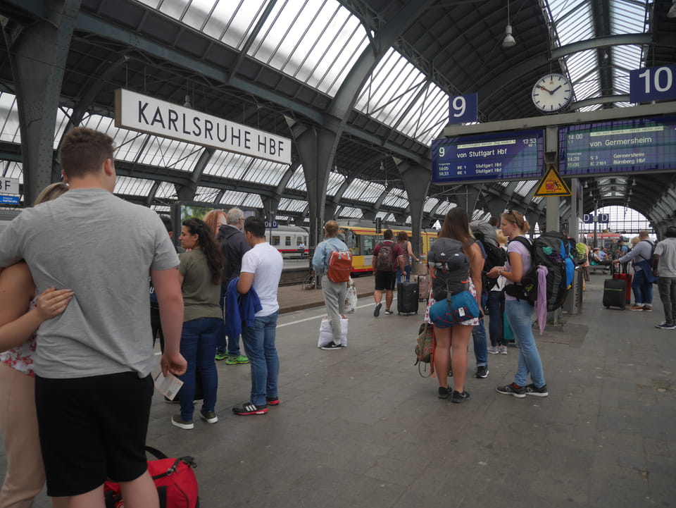 Um 10 war cih auf dem Bahnhof, 10:05 fuhr der Zug los. Zuerst musste ich nach Offenburg. Dort dann umsteigen nach Karlsruhe.