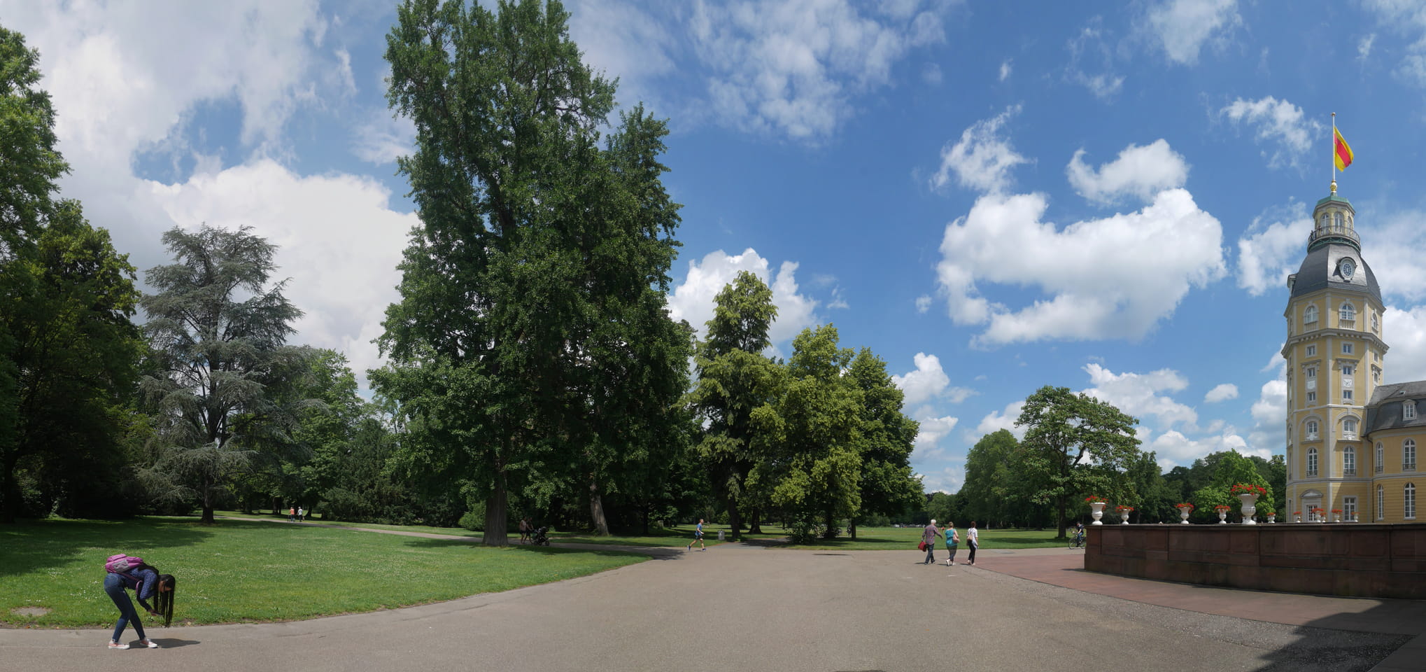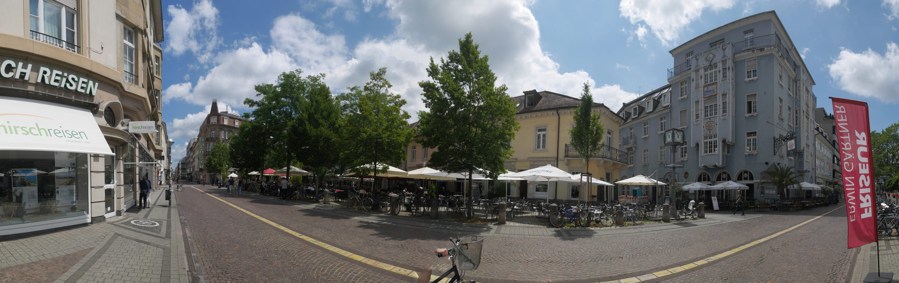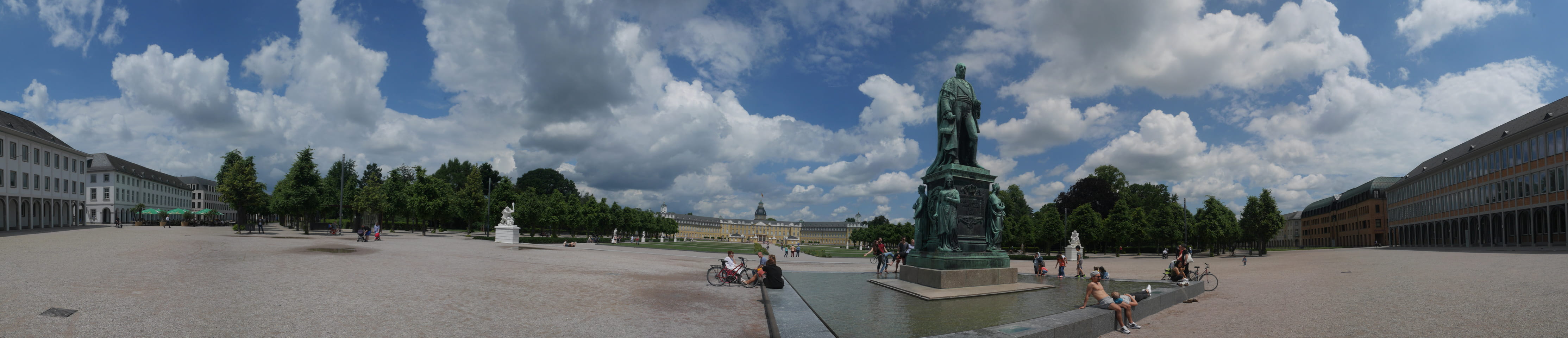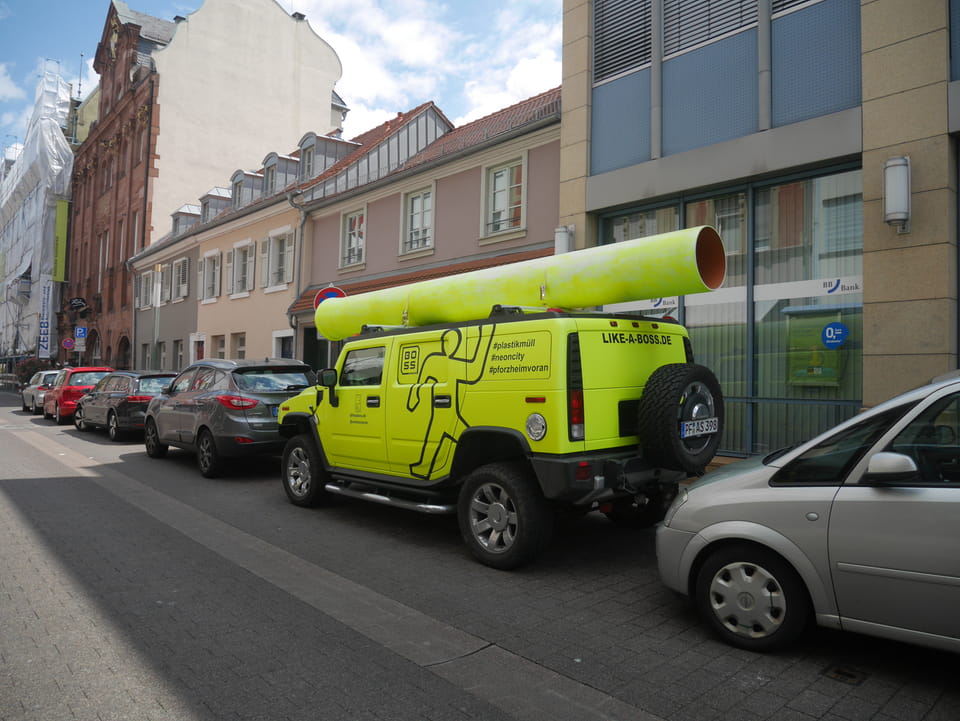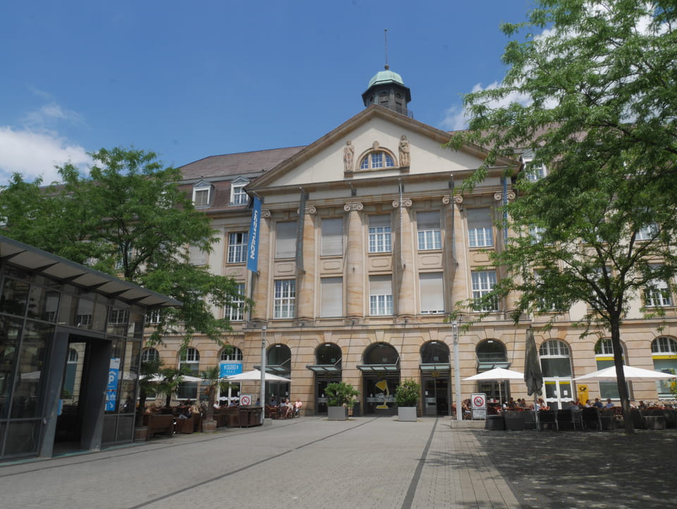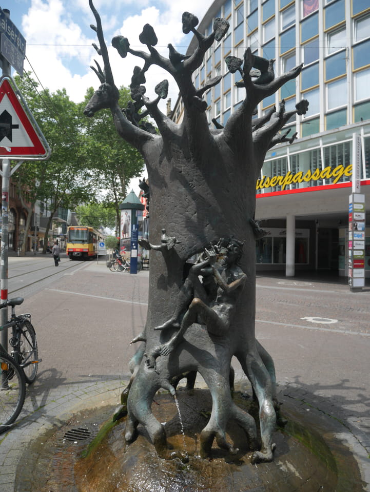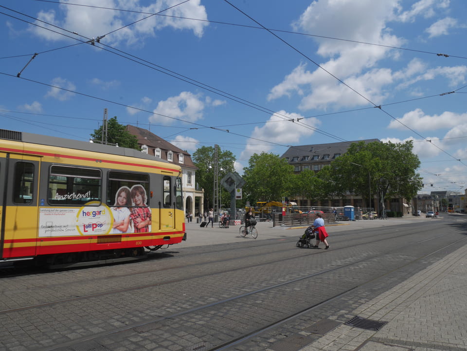 Die Stadt liegt kaum auf der Touristenroute. Ich kannte Karlsruhe nur als Sitze des Budesverfassungsgerichts. Ich ging erst mal zur Gepäckannahme, doch der Automat da nahm nur €1 Münzen. Ich ging also zu McDonalds daneben, kaufte einen Cappuccino und lies mir den Rest des €20 Scheins in €1 auszahlen. Dann alles verstaut, startete ich das Video.