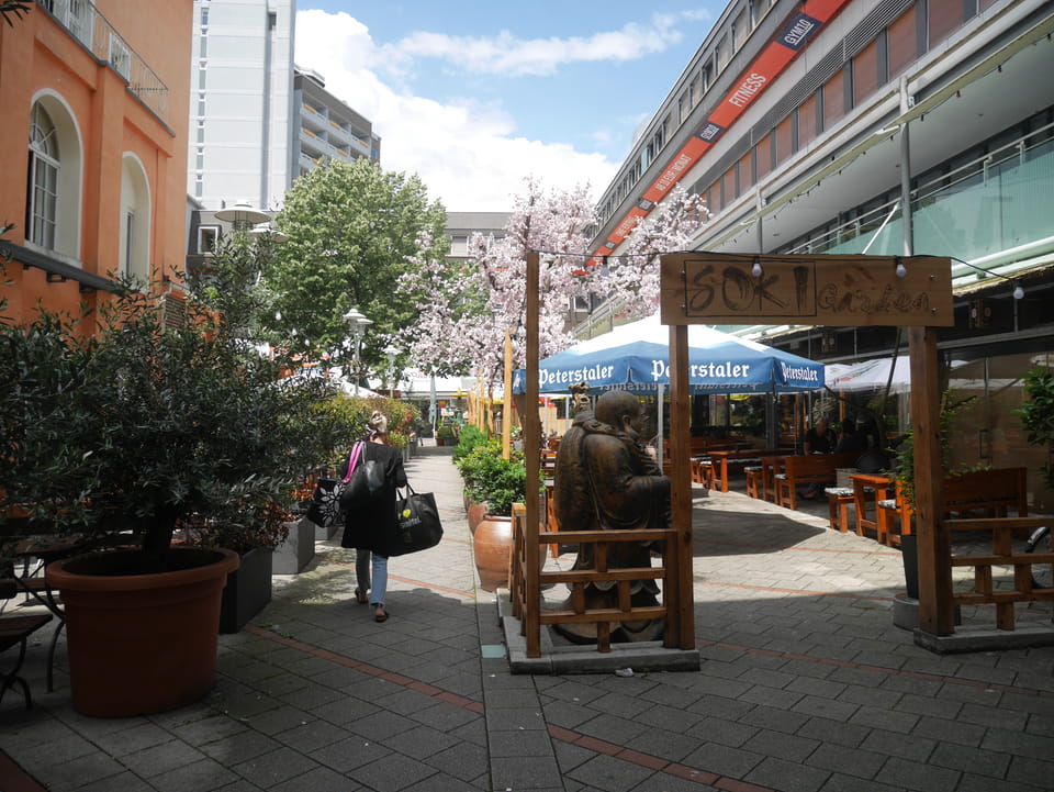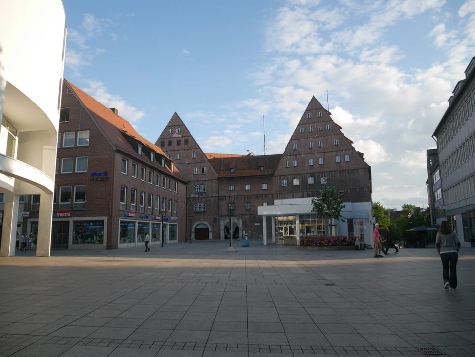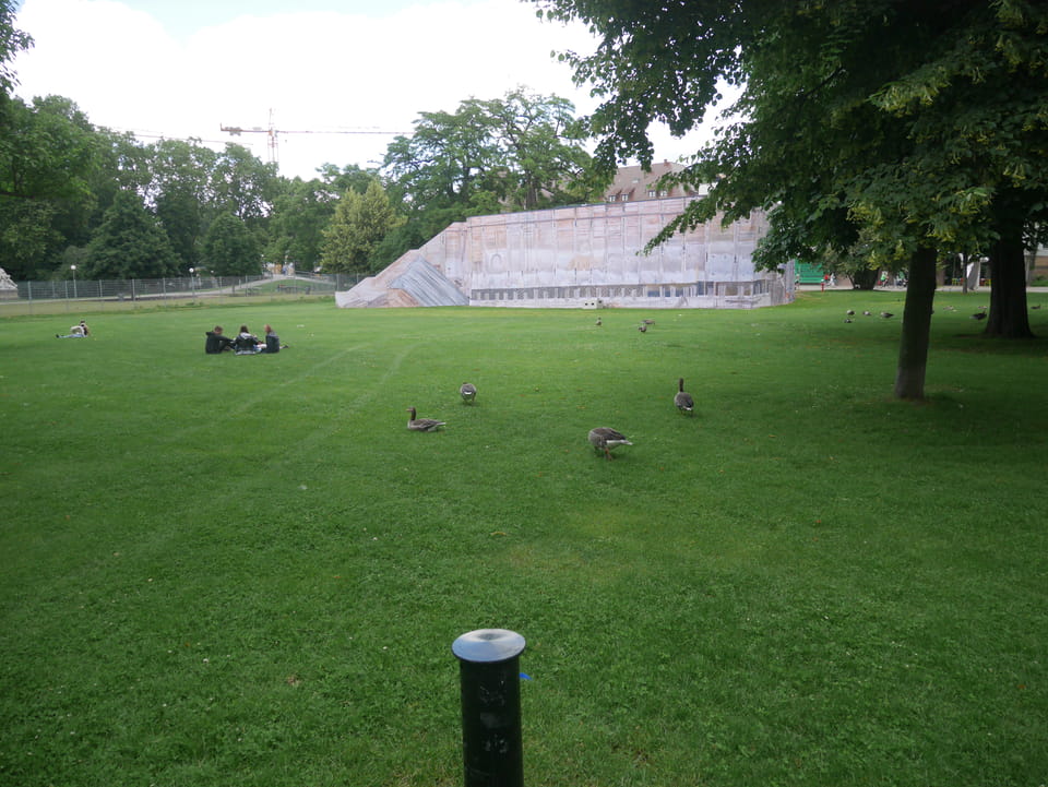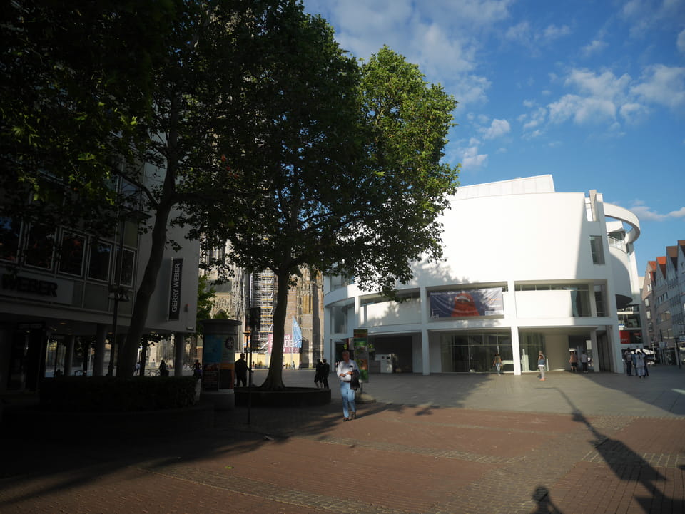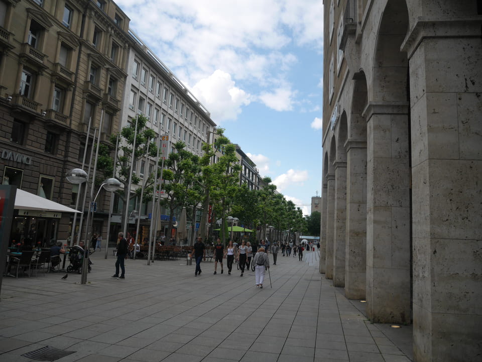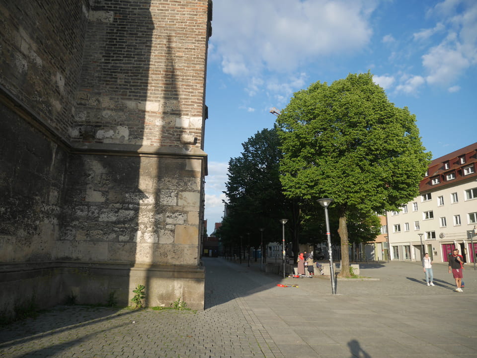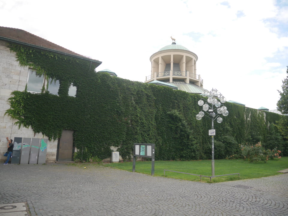 Gleich am Bahnhof ist der Stadtgarten und Zoo. Ich hatte aber gecheckt, dass der Eintritt €11 kostet und das ist mir’s nicht wert. Ich hatte keine Zeit aber die Strecke auf der Straße war extrem langweilig. Keine Leute, nur Bäume und Mehrfamilienhäuser.