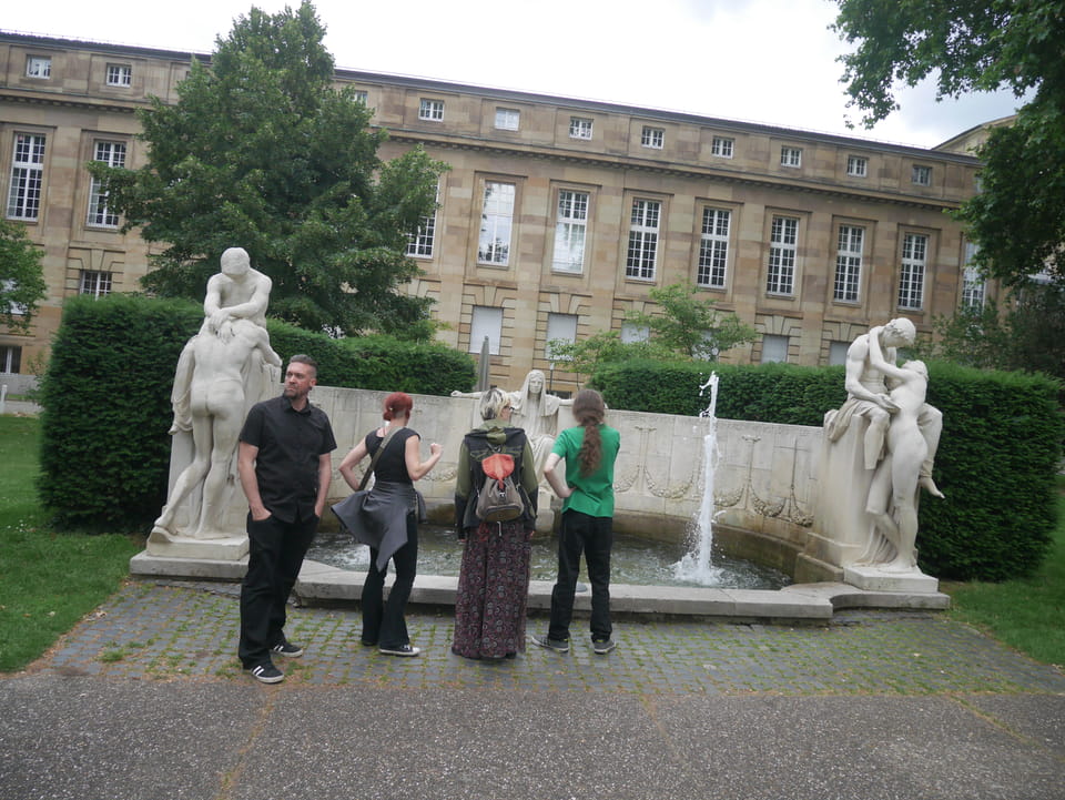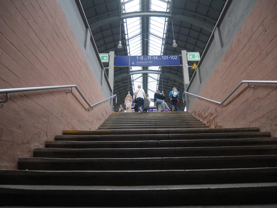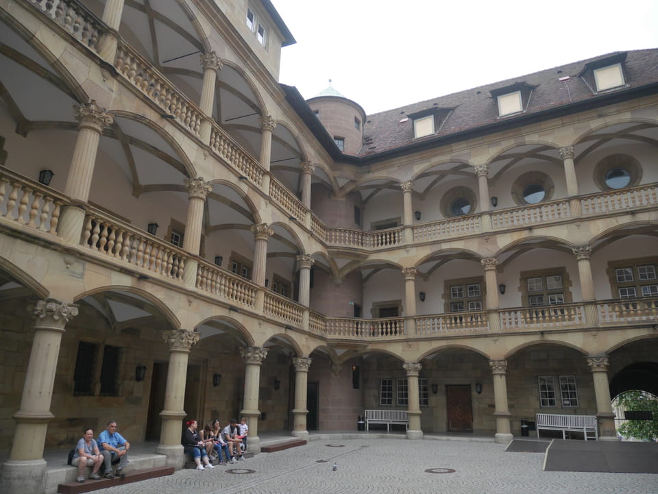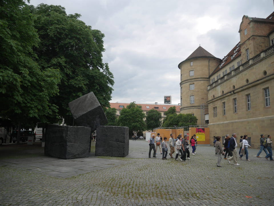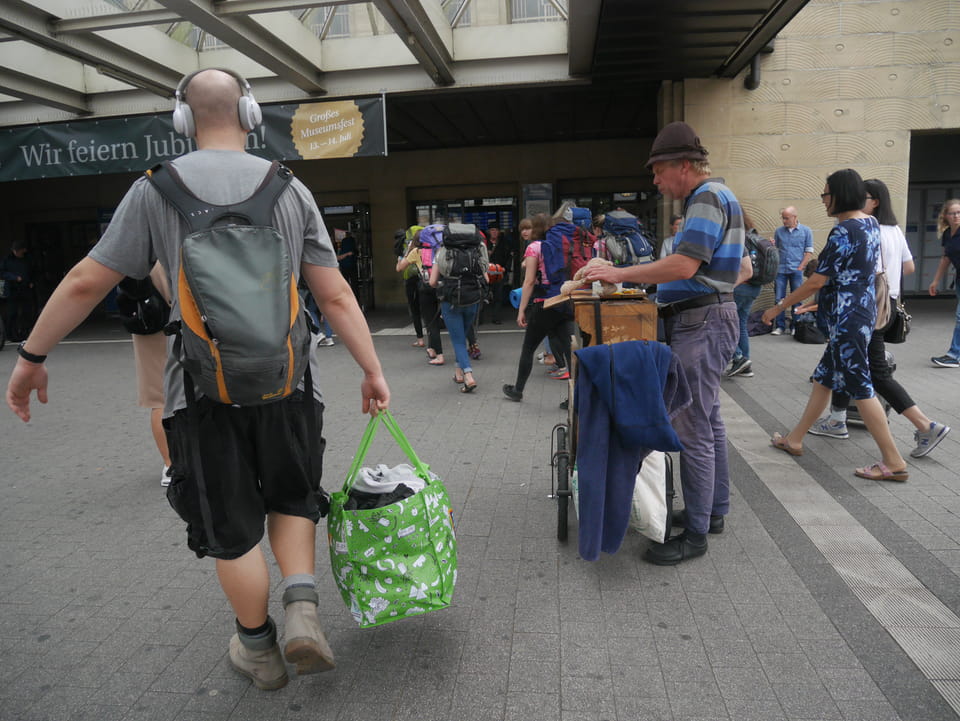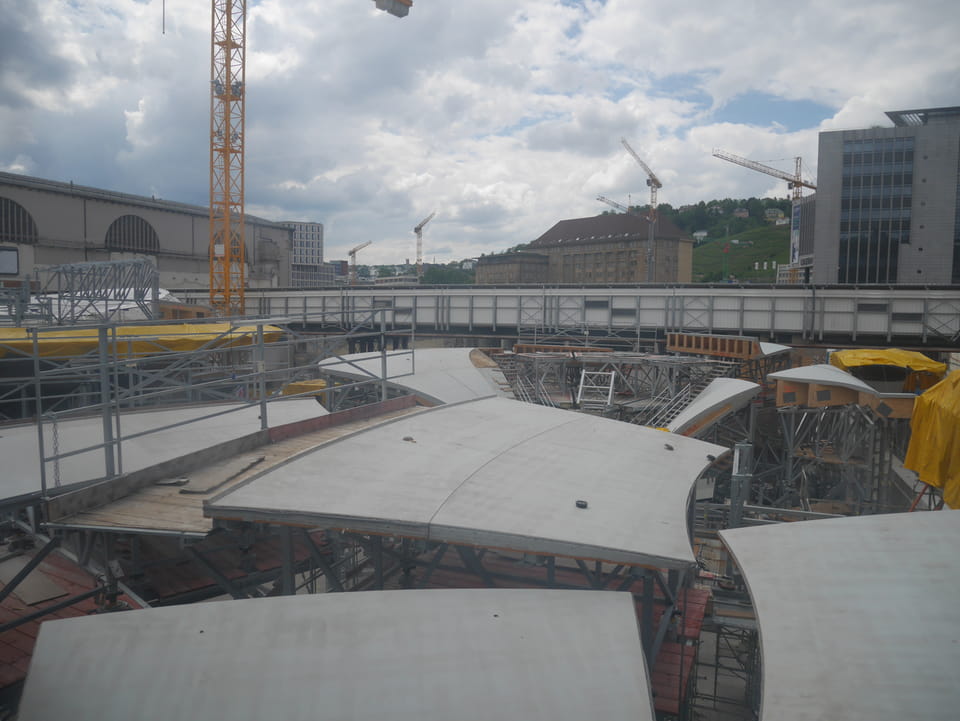 In Stuttgart dann endlich kann man das ewige Bauprojekt Stuttgart 21 bewundern. Zum Sonntag bewegte sich da nichts. Das Loch ist groß, seit Jahren. Bis zum Bahngebäude war’s ein Stückel, dann wieder €5 für die Gepäckbox. Die hatten da auch €1,50 / h Versionen, die jedoch alle belegt waren. Länger als 2h wollte ich nicht in Stuttgart bleiben.