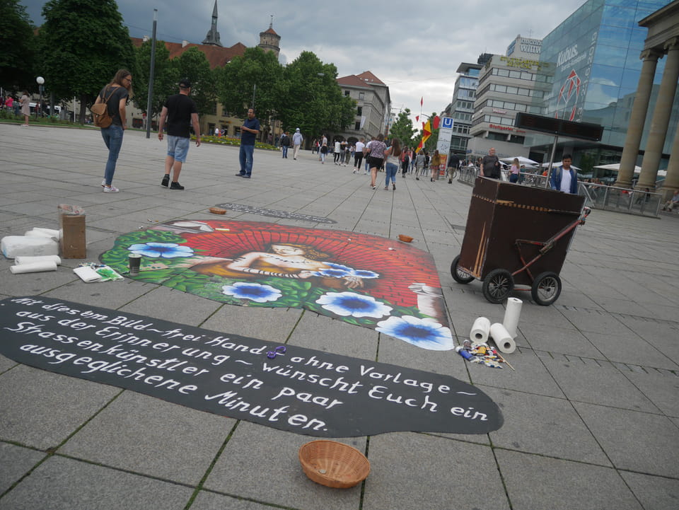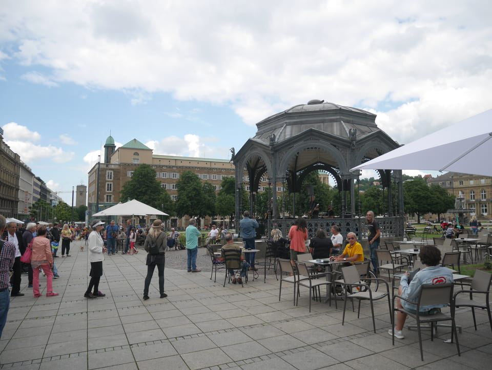 Gleich in Bahnhofsnähe war’s in Stuttgart gleich viel interessanter. Ein Brunnen, dann das Schloss und der Park. Zum Sonntag alles ausreichend voll. Die Ladenstraßen waren natürlich leer aber ich hatte eine nette Runde von ca. 50′ was mir dann auch reichte. Die zweite Station geschafft und Nummer 3 hatte noch Zeit. Zeit für ein Eis bei Burher King, wo ich meinen Toiletten-Rabatt noch los wurde.