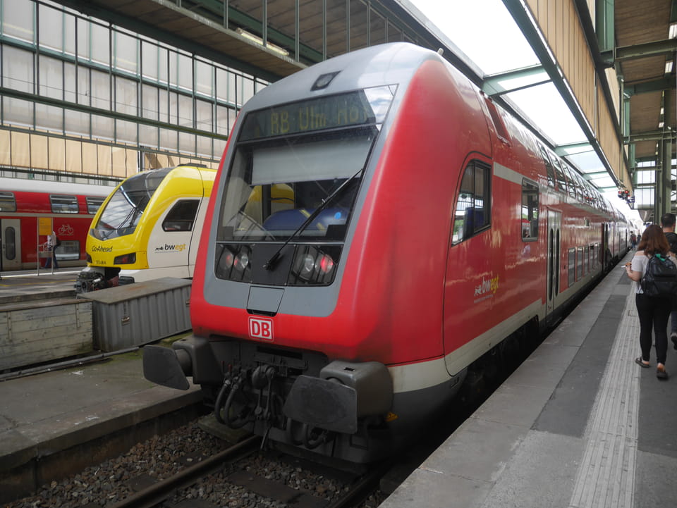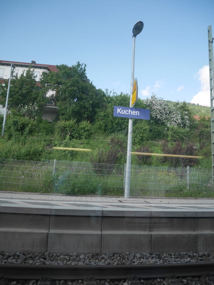 Dann gab’s die Option von Suttgart nach Ulm direkt oder ca. 18′ schneller mit Umstieg irgendwo in einen Regionalexpress. Ich war zu faul zum Umsteigen und nahm die Dörfer mit. Da gab’s den Ort „Süßen“ gefolgt auf „Kuchen“. Der Zug wurde immer leerer aber ich hatte meinen Sitzplatz und Ruhe auf der ca. 2h Fahrt.