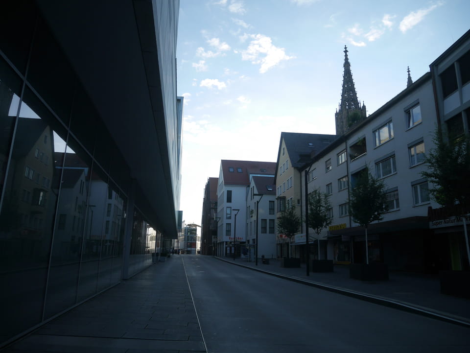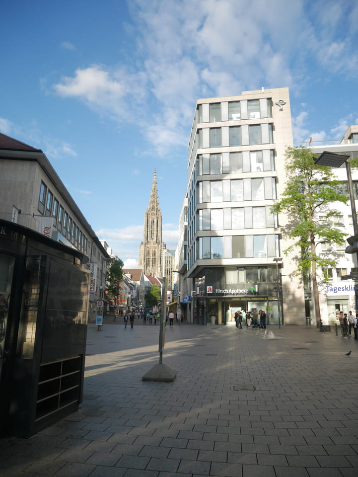 Wenig Zeit blieb mir für Ulm. Die Münzen schwanden. Nochmal €5 in Ulm für’s Gepäck und dann schnell los. Ich fand erst jetzt heraus, dass die Bushaltestelle des Flixbuses 20′ per Straßenbahn im Norden der Stadt liegt. Das haute die ganze Planung durcheinander.