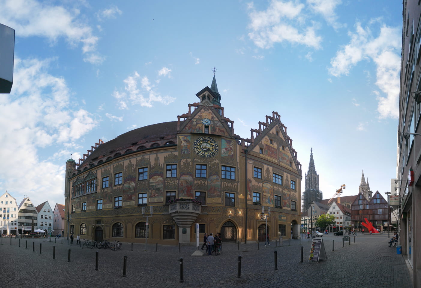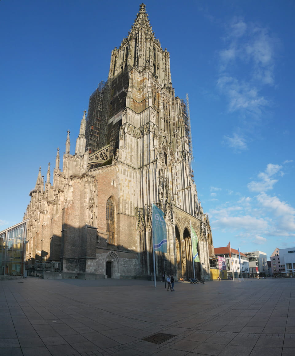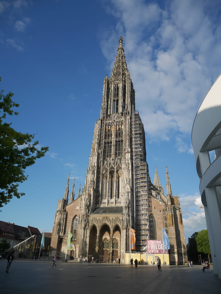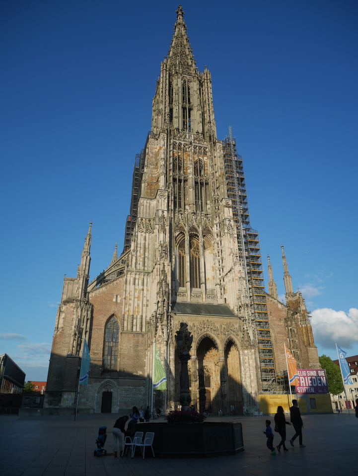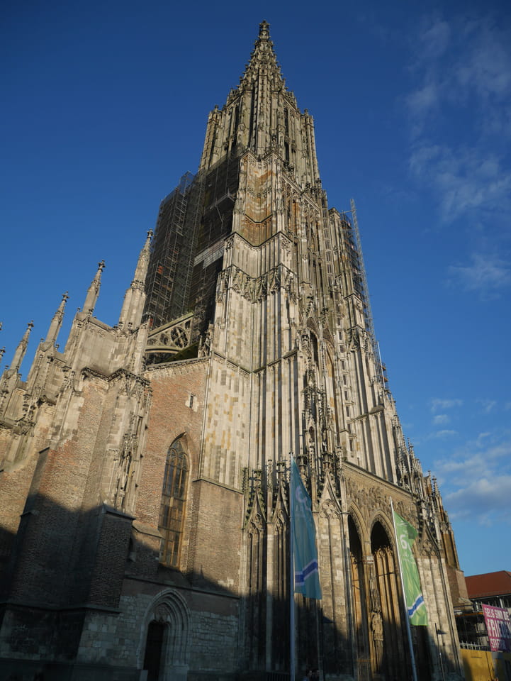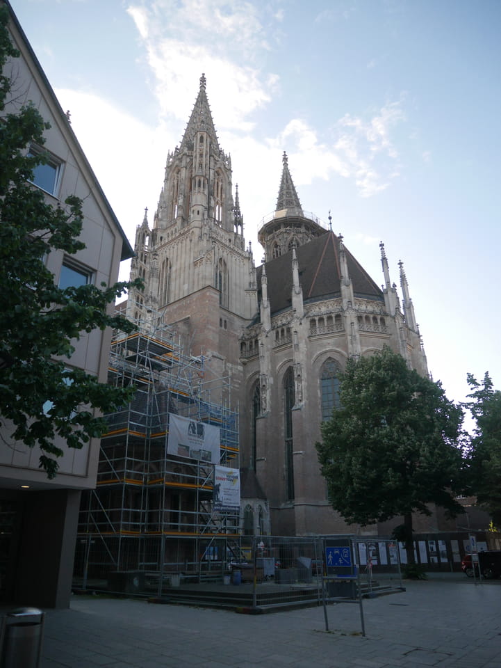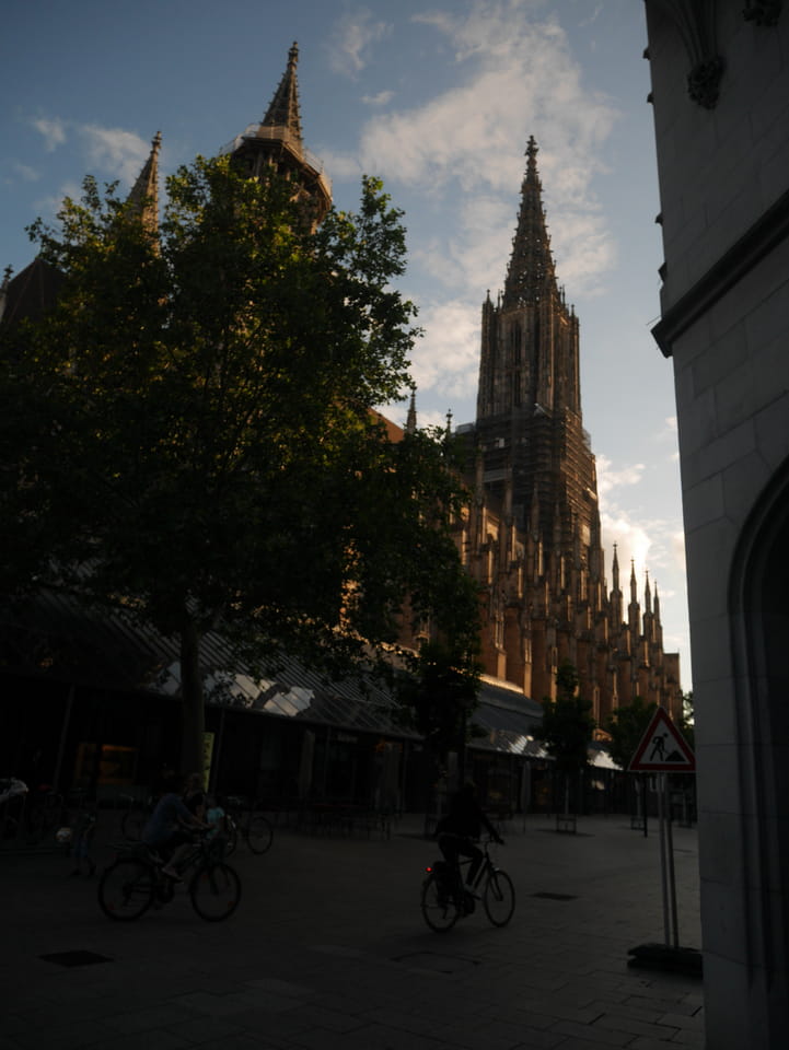 Ulm war erst im Zentrum tot, dann an der Donau aber netter. Sonntags kann man eben nur auf Restaurants zählen. Das Ulmer Münster war beeindruckend im späten Tageslicht.