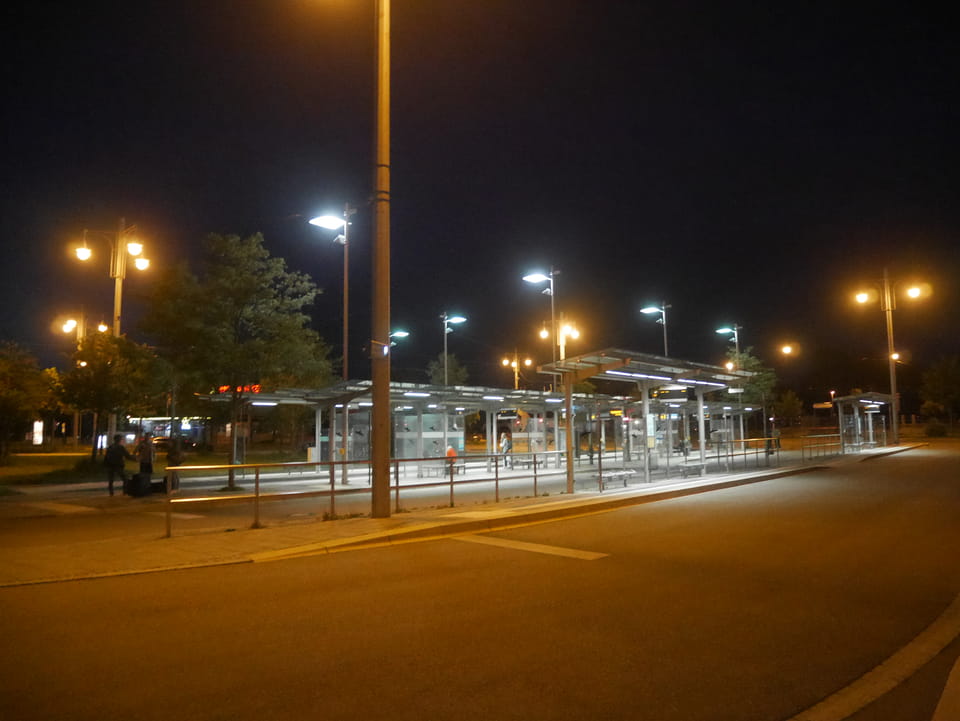 Mit dem Flixbus dann nach Augsburg. Auch hier weit weg vom Stadtzentrum. Der Bus hatte dann ca. 30′ Verspätung. Ich duftete nicht so frisch nach dem Tag auf den Straßen. Busse nach Sarajevo, Antwerpen und sonstwohin kamen bis meiner nach Bratislava. Die Linie N36 wieder und wohl der gleiche Bus, den ich vor Tagen aus Brüssel nahm. Er hatte das zweite WLAN drin. Dann in Augsburg Nord P+R gab’s doch noch ÖVP. Straßenbahn zurück (€3), gerade noch in’s Hostel geschafft um 23:00. Normalerweise ab 21:00 geschlossen hatte ich heute auch wieder Glück und dann sogar ein ganzen 6 Bett Zimmer für mich.