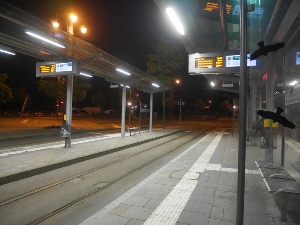 Ich hatte eine Straßenbahnverbindung 20:29 und musste bis 20:20 eben zurück sein. Das schaffte ich, wenn auch das Video nur unter 40′ wurde. Man könnte hier schon nochmal her aber irgendwie reichts’s mir auch. Hier in Ulm gab’s kaum günstige Unterkünfte