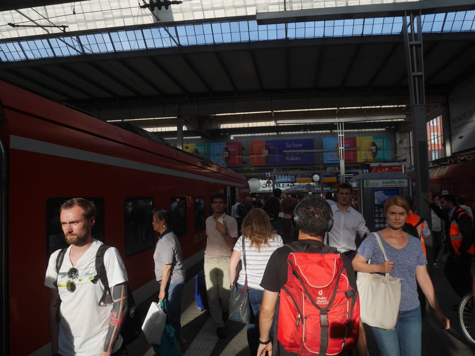 Zurück im Hostel schnappte ich meine Sachen und spazierte zum Bahnhof. Ich hatte noch etwas Zeit bis zum Zug um 18:06. Bei Subway ein Wrap und dann zum Bahnsteig. Im Zug dann wollte ich mein Ticket kaufen doch die bahn App verweigerte die Buchung, weil bis zur Abfahr weniger als 3 Minuten waren. Ganz schön dumm. Der Zug hatte dann noch 10′ Verspätung und wartete aber das Ticket ließ sich nicht kaufen. Ich buchte also für den folgenden Zug, war ja ohnehin Flexpreis zu €15,60 oder so. Es wurde auch kontrolliert.