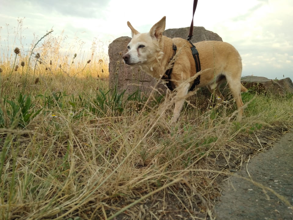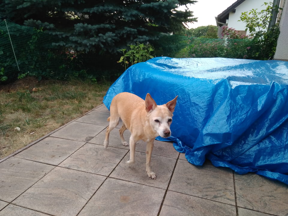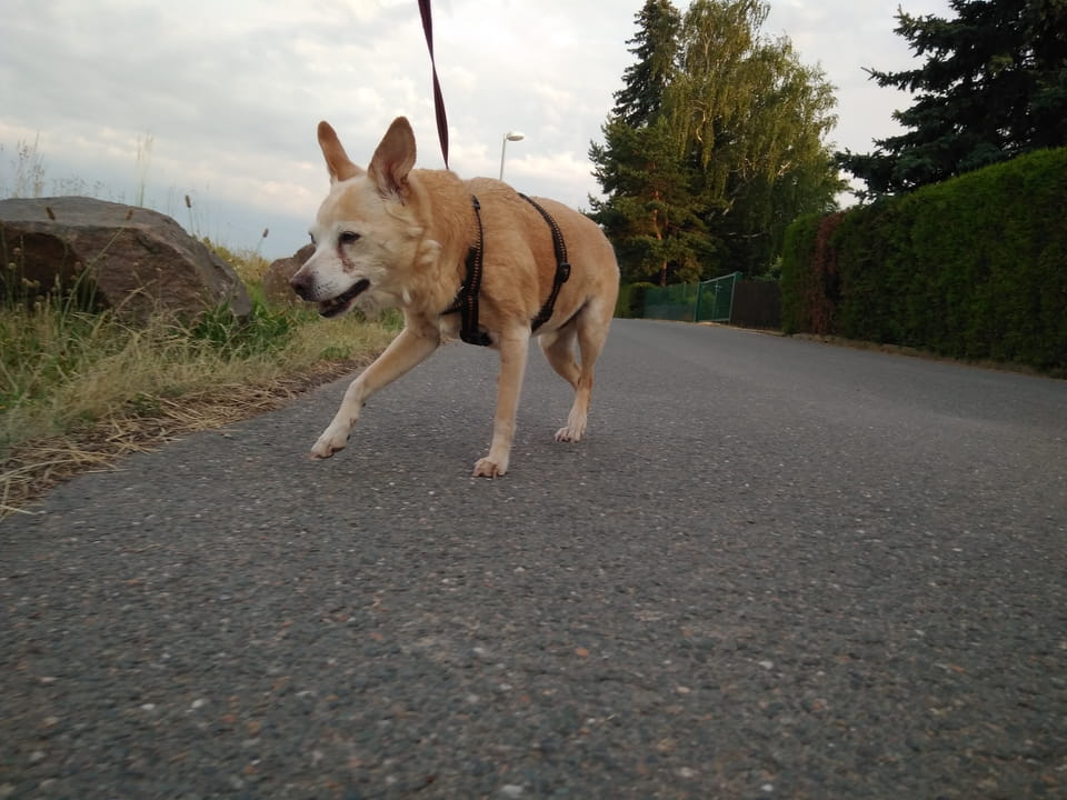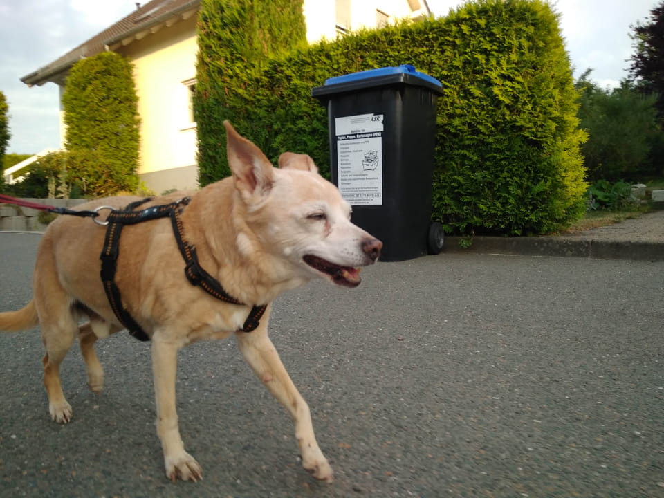 Dann schaffte ich ihn runter, wo er dann nach wenigen Minuten doch heulte. Irgendwann nach 5 kam ich zur Ruhe, der Hund kam doch zurück in’s Schlafzimmer. Mit ein paar Kartons unter dem Wassernapf tapst er wenigstens da nicht mehr so schnell rein und haut alles um. Er hat schon ein Problem, ist aber eben sonst auch noch ganz fit, wenn auch geistig nicht mehr ganz.