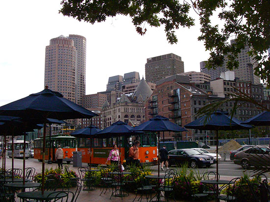 Ich holte mir erst mal einen Café und ein paar Frühstückssachen. Schmeckte nach Europa. Dann spazierte ich stramm Richtung Wasser und lief einige Stunden einfach immer an der Küste entlang. Es ging durch ein italienisches Viertel, North-End, Nord-Bahnhof zum Südbahnhof schließlich wieder Richtung Downtown. Boston hat eine gute Atmosphäre. Erst gegen Abend saß man ein paar Sonennstrahlen aber wenigstens regnete es nicht. In Chinatown waren viele Restaurants. Leider hatte ich zu wenig Hunger. Dann nur eine Tasche Chilli bei Quiznos.