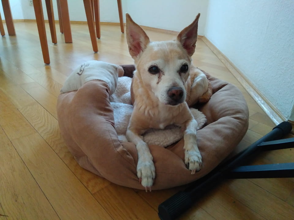 Zu Hause war er erst ruhig aber legte abends dann wie auch sonst wieder los. Heulen und herumrennen. Ich hatte eins seiner Liegekissen gewaschen, roch besser. Gegen Mitternacht und 1 Uhr dann langsam Ruhe. Er legte sich bei mir in’s Zimmer und hörte auf, zu jammer. Ruhe bis halt wieder 5 Uhr früh.