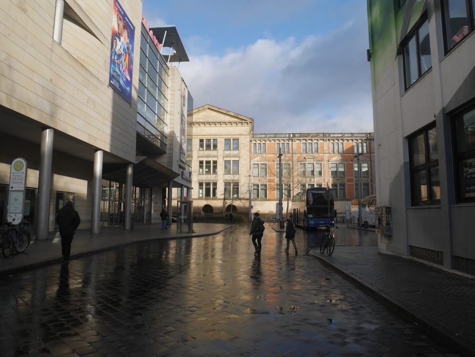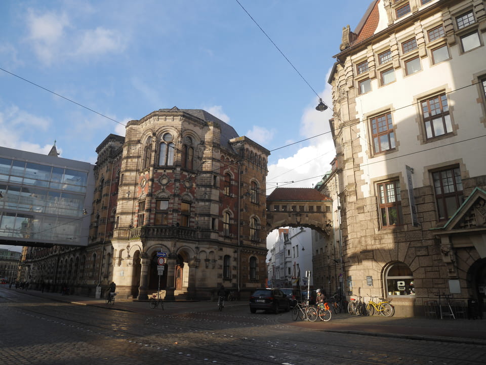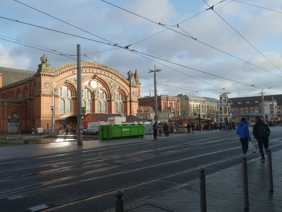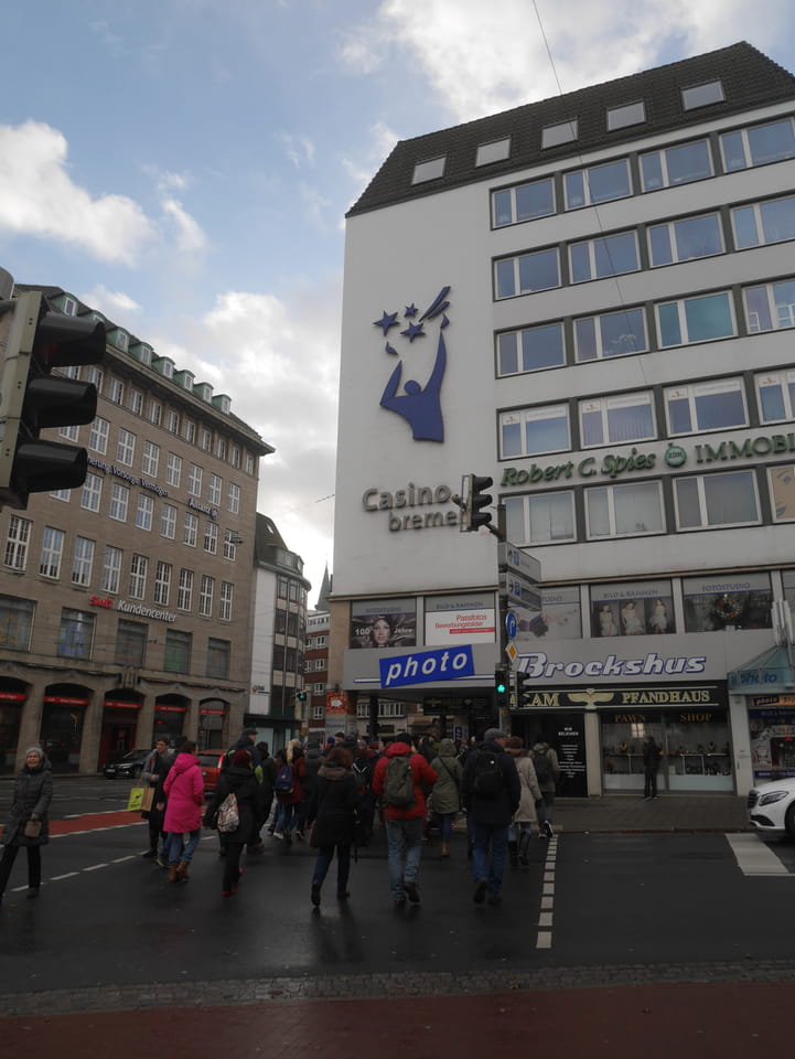 Meine Taschen konnte ich hier im Hostel lassen. Zwischen 13 und 15 Uhr war das Büro allerdings geschlossen. Ich kam gegen 12:30 endlich mit meinen Cameras vor die Tür und spazierte zum Bahnhof. Da noch ein Snack bei McD während ein Ausländer mit ordentlich Krakelen gerade verhaftet wurde. Er jammerte, dass ihn die Handschellen den Arm brechen oder so. Naja, viele Migranten hier in Bremen und eben einige auch etwas unfreundlich, wie gestern im Bus. Ich hatte aber erst mal was vor – eine Runde durch Bremen.