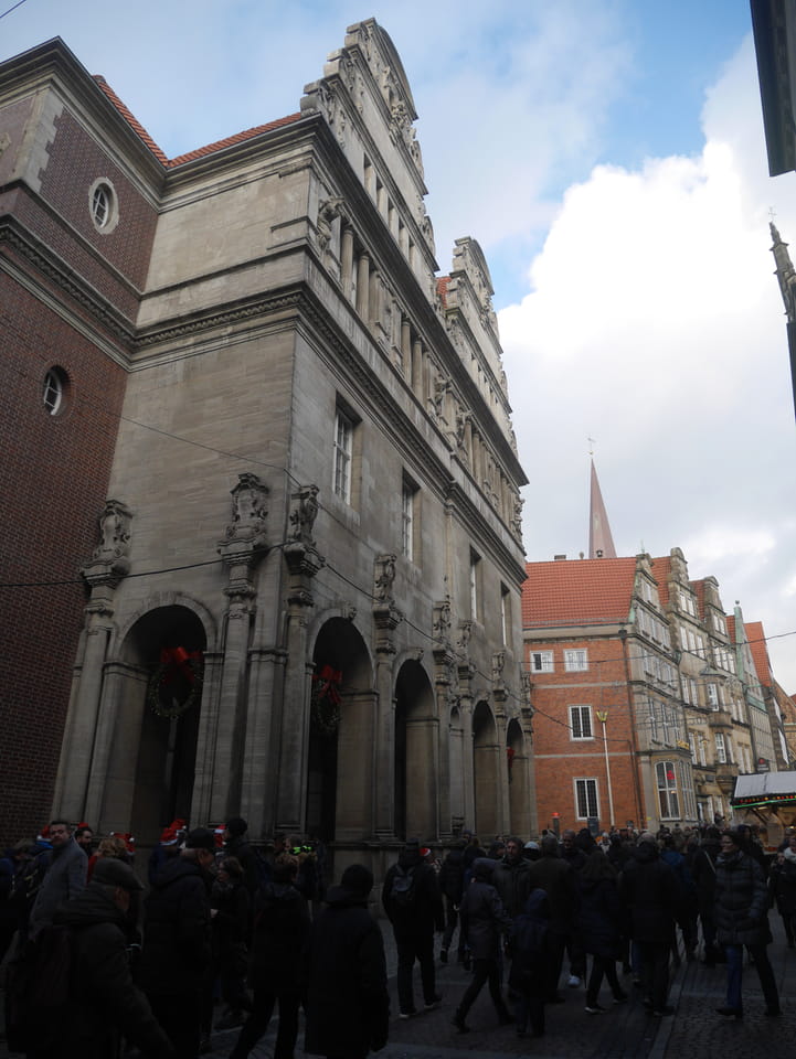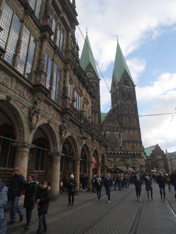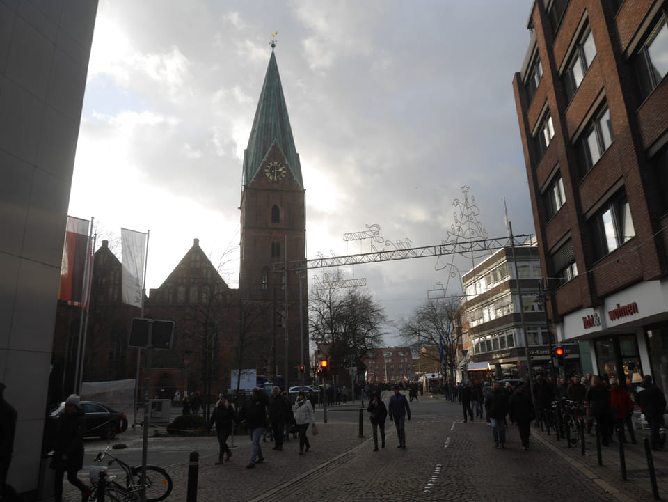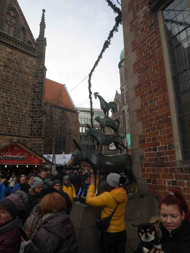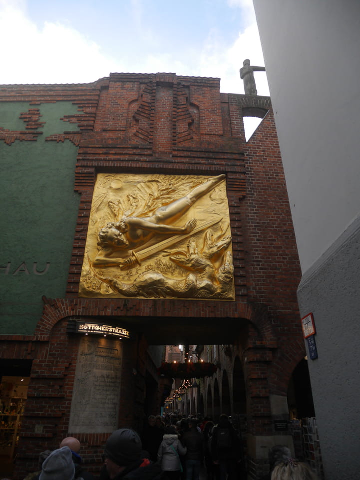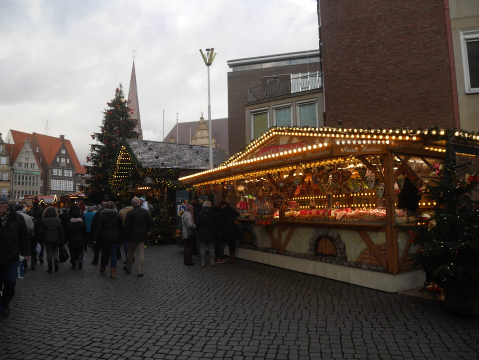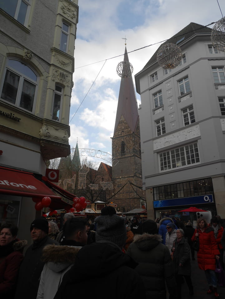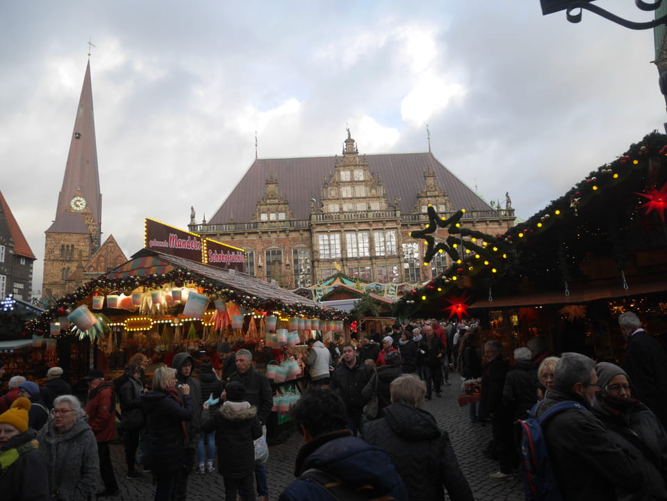 Selbst jetzt zum Mittag waren die Straßen voller Leute. Der große Weihnachtsmarkt war schwer zu filmen. Ich kam noch in den Dom und schaute mich dann auch außerhalb der Innenstadt um. Ich hatte ja keine Ahnung von Bremen oder stellte mir das ganz anders vor. Die Stadt schien aber echt nett. Das Schnoorviertel hatte etliche alte Häuser und extrem enge Gassen. Super war’s!