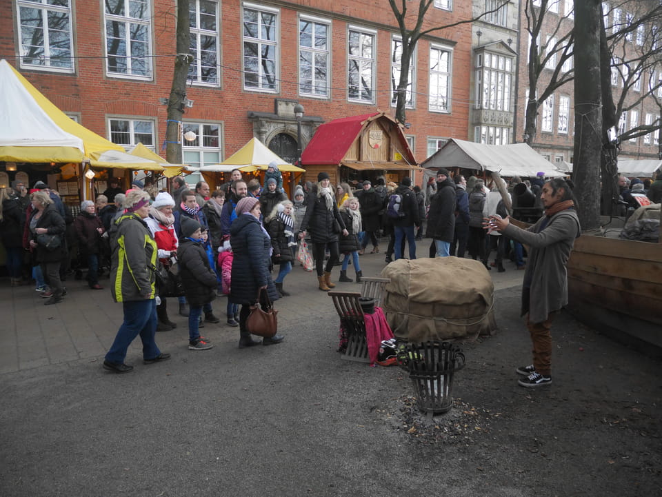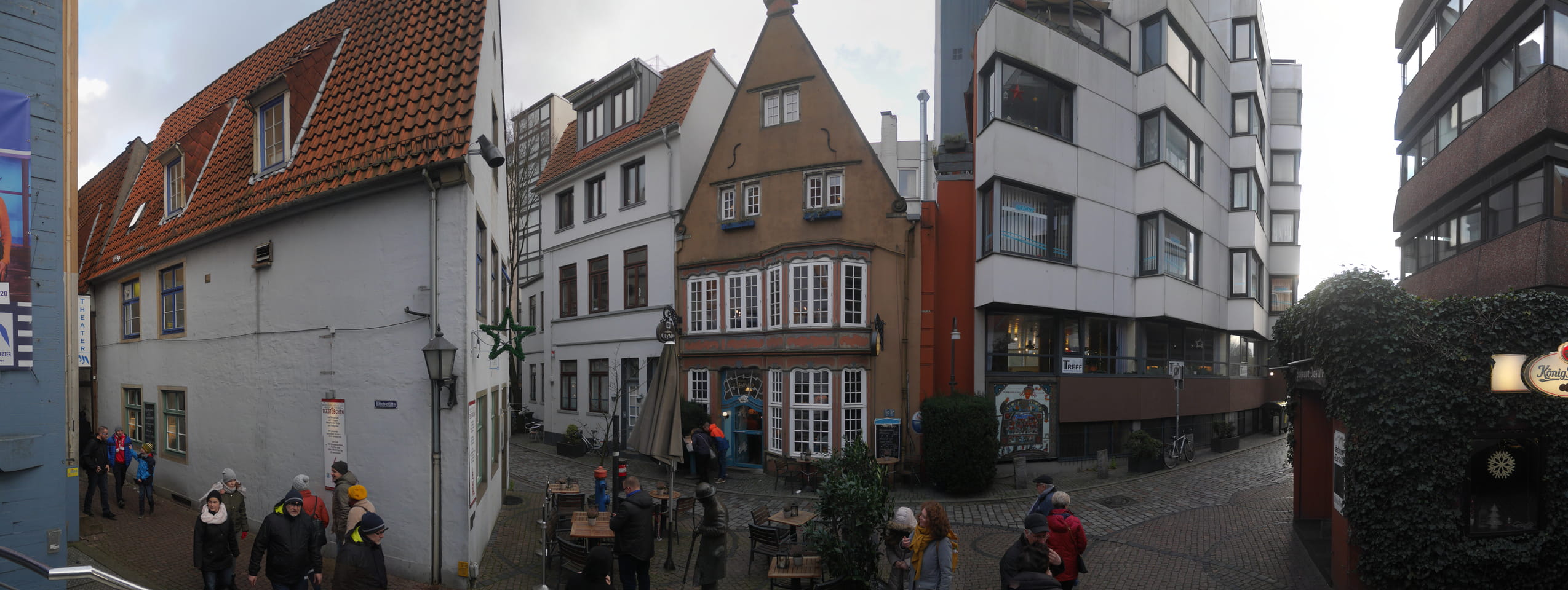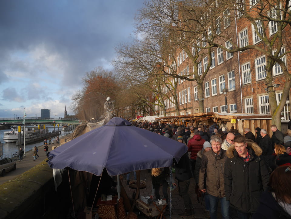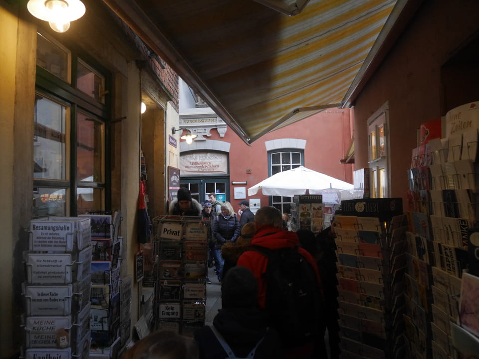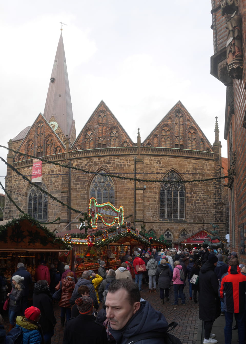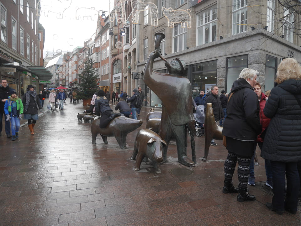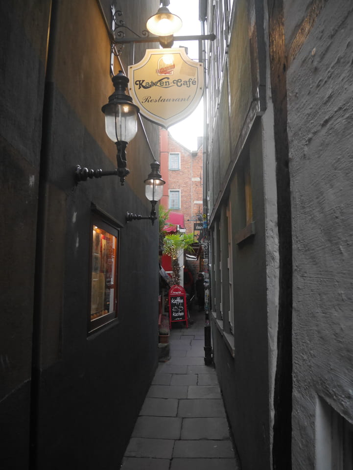Selbst jetzt zum Mittag waren die Straßen voller Leute. Der große Weihnachtsmarkt war schwer zu filmen. Ich kam noch in den Dom und schaute mich dann auch außerhalb der Innenstadt um. Ich hatte ja keine Ahnung von Bremen oder stellte mir das ganz anders vor. Die Stadt schien aber echt nett. Das Schnoorviertel hatte etliche alte Häuser und extrem enge Gassen. Super war’s!