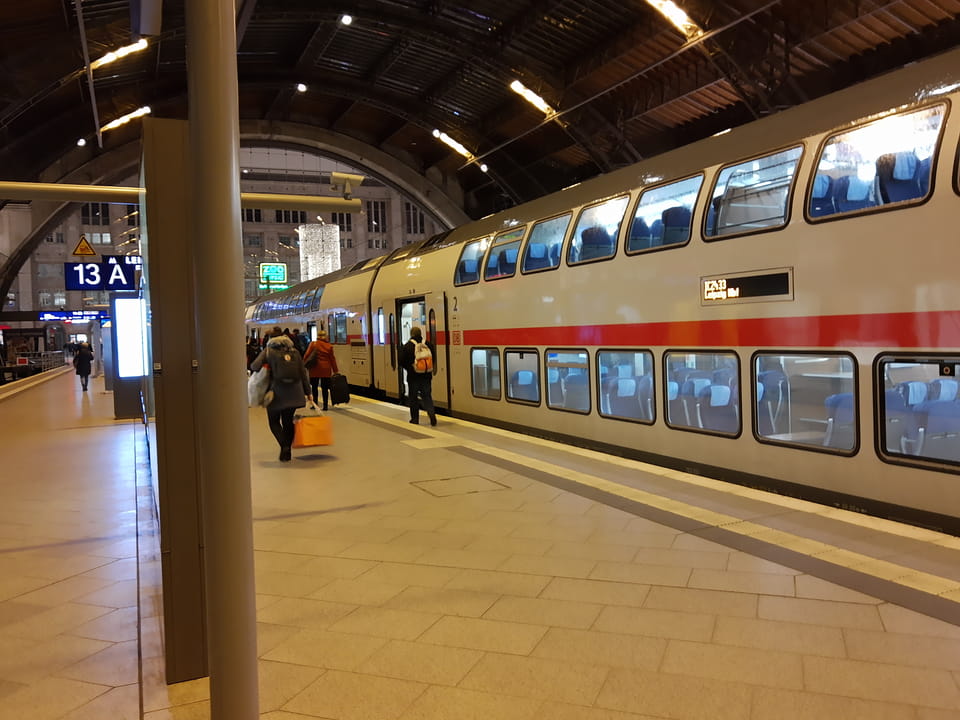 Nach über einer Stunde beendete ich den Spaziergang und ging zurück in’s Hostel. Noch 10’ bis 15:00 Uhr, die ich einfach nur herumstand. Dann noch eine halbe Stunde im Warmen und schließlich zurück zum Bahnhof für meinen Zug nach Leipzig.