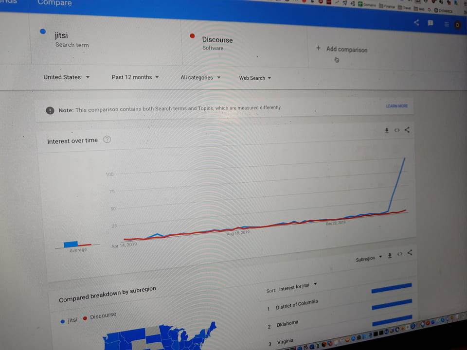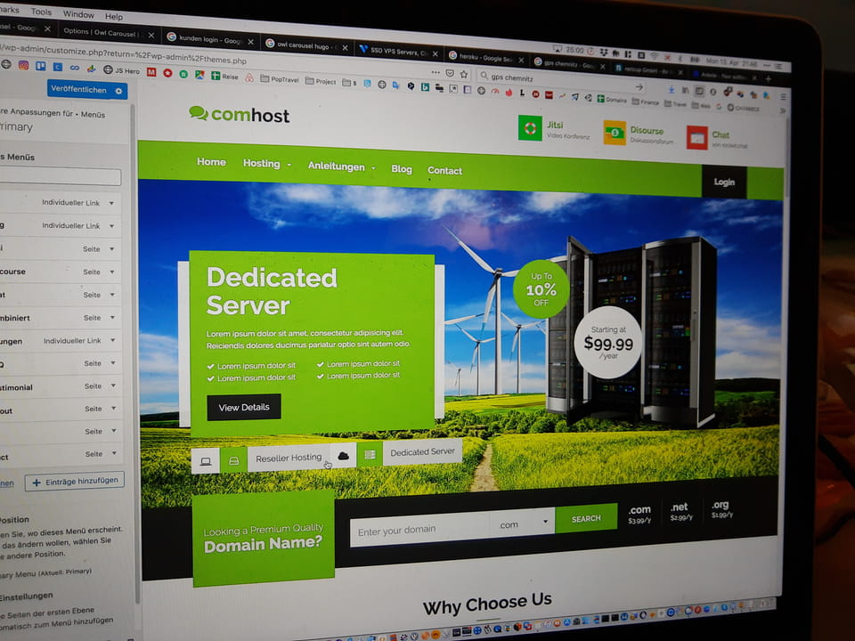 So eine Angebots-Website schüttelt man auch nicht so einfach aus dem Ärmel. Ich hatte das alte Eco Host Theme mal kostenlos für WordPress (und WHCMS) bekommen, was seit 2016 designtechnisch auch in die Jahre gekommen ist. WordPress sieht man schnell. Jetzt war’s aber erst mal egal, denn Texte müssen her. Das Original in English – mit .po Files hatte ich schon lange nicht mehr lokalisiert – jetzt fix ein paar Sachen übersetzt. Das kam nur auf der Website nicht an. Bevor ich groß Arbeit in’s Backenend investiere, muss ich erst mal das Interesse checken, ob jemand mal was zahlen will. Google Trends zeigt nur steigendes Interesse bei jitsi. Die jitsi.co Domain sollte ich als send-up nehmen.