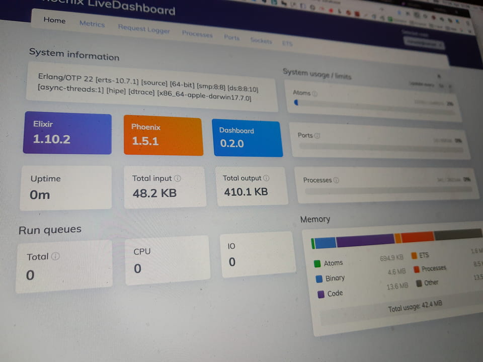 Am Ende installierte ich mir Phoenix. Das Live Dashboard ist schon cool.