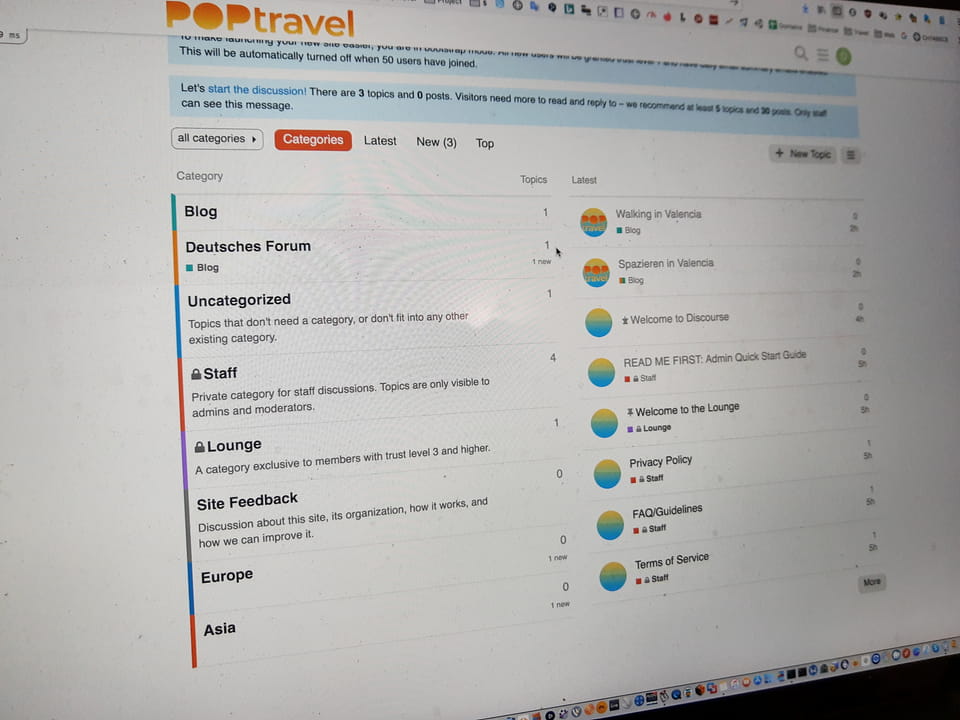Besuch ist nett und heute Nachmittag besonders gut bei Regenwetter. Ich arbeitete dann ab Abend am Server. Die ganze alte DB wurde abgestellt, community.poptravel.org lief dann. Also data container, ein frisches Discourse Docker und auch die ganzen Logos und Icons hochgeladen.