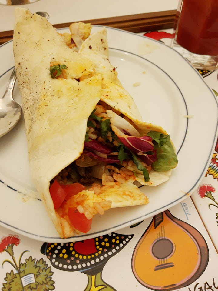 Das erste Mal machte ich Burritos con carne. Man muss da recht wenig einwickeln, sonst geht der Fladen nicht zu. Schmeckte aber super.