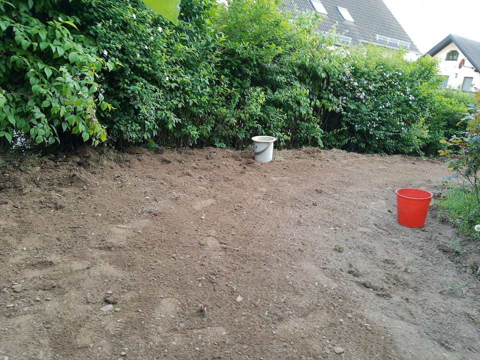 Abends machte ich die Wiese weiter eben. Es könnte da noch weiter und länger herumgewurschtelt werden. Ich kam nur schon mehr auf eine Steinebene, statt Erde.