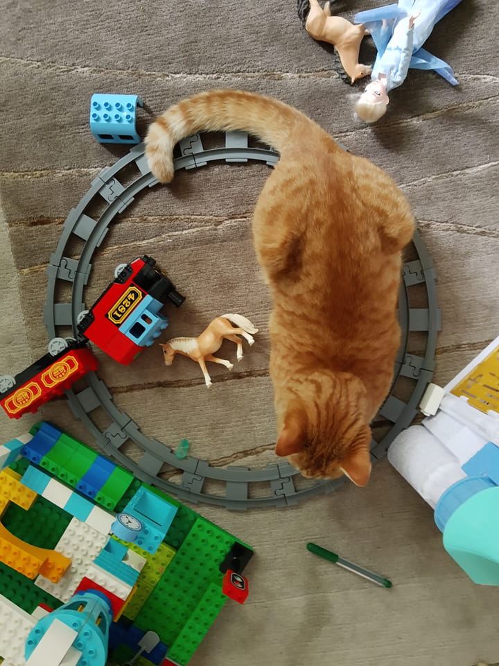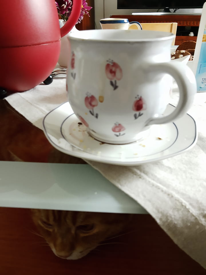 Wir waren kurz zum Kaffeetrinken bei meinem Bruder + Familie. Ich sollte ein paar Infos für den Katzendienst nächste Woche bekommen. Bei Kaffee und Keksen erfuhr ich, was und wo die Katze so ist und ihr Geschäft macht.