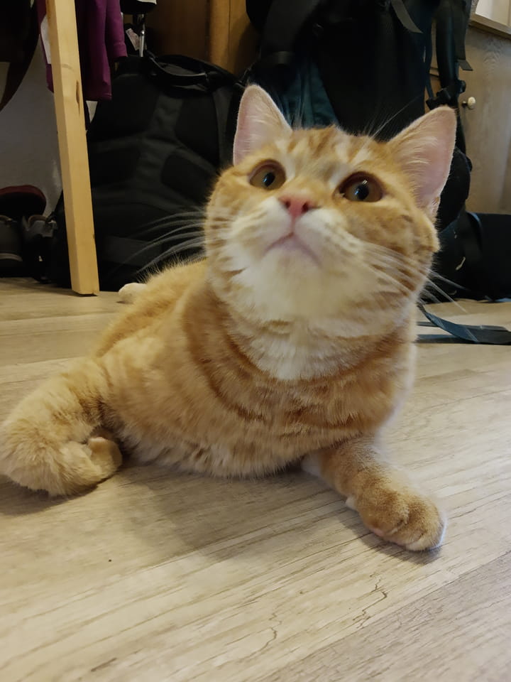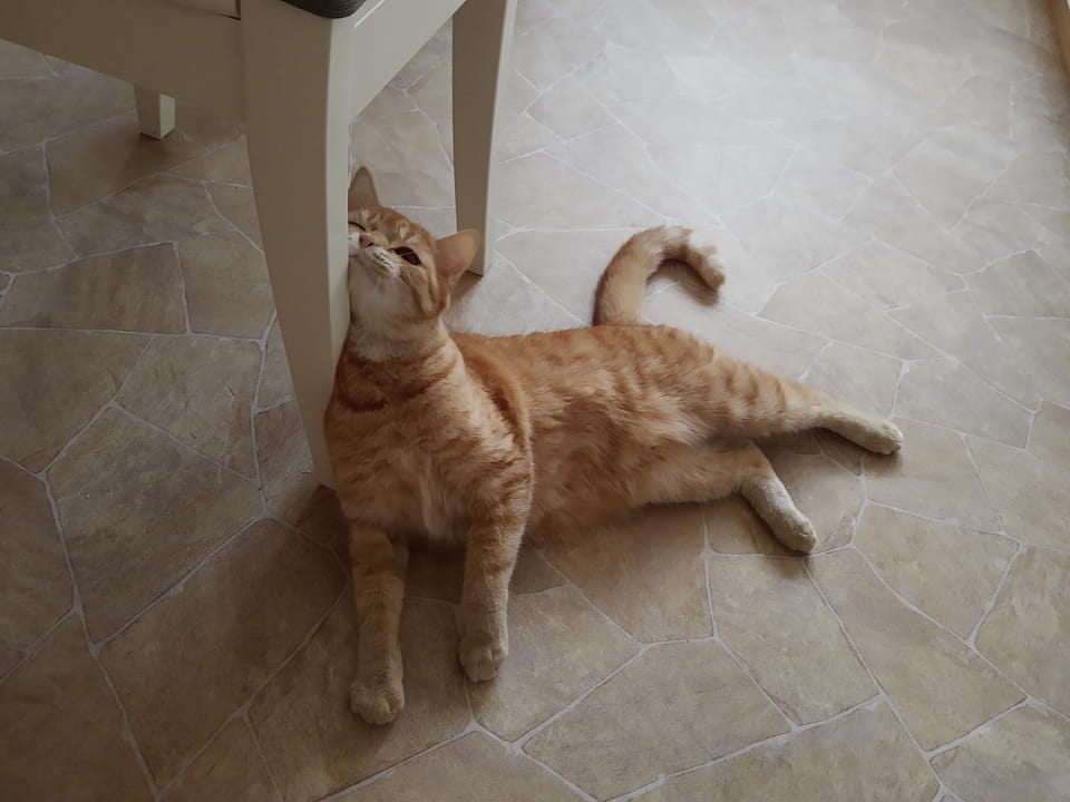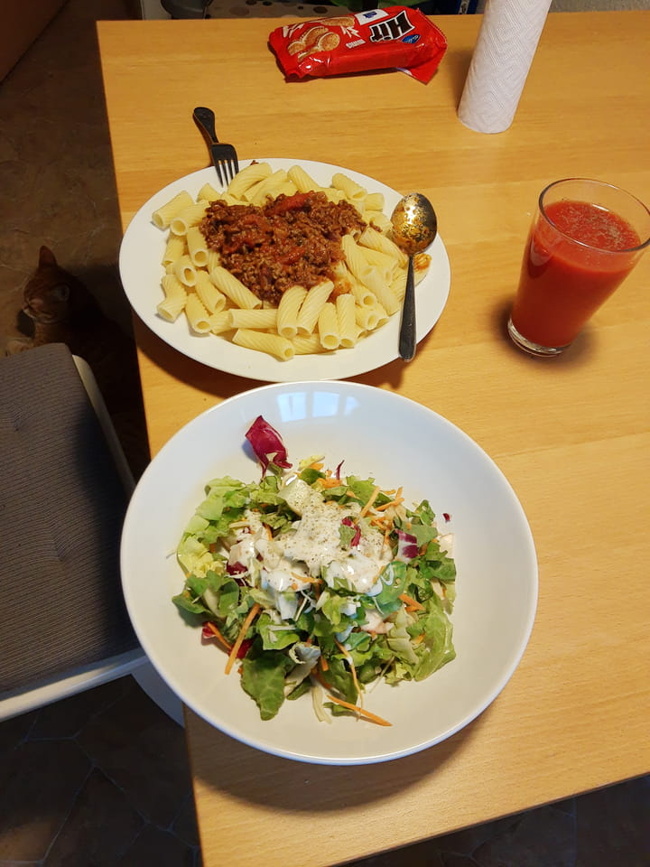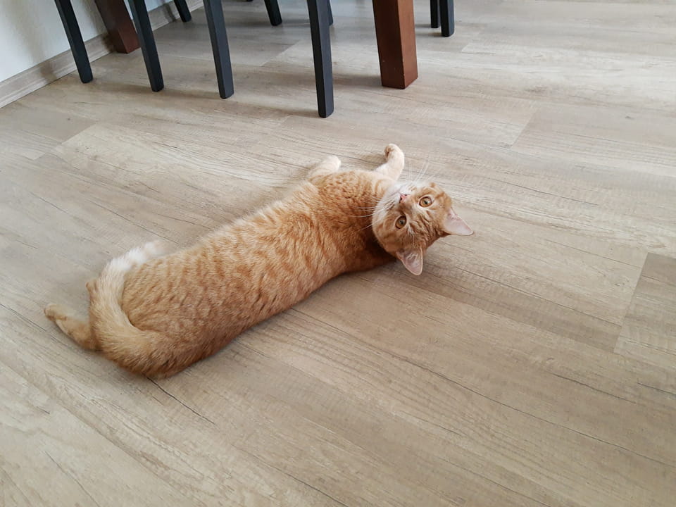 Lange geschlafen, immer noch nicht ganz fit. Die Katze war recht ruhig, kratze wieder nicht an der Tür. Erst beim Frühstück wurde sie wach und machte Action.