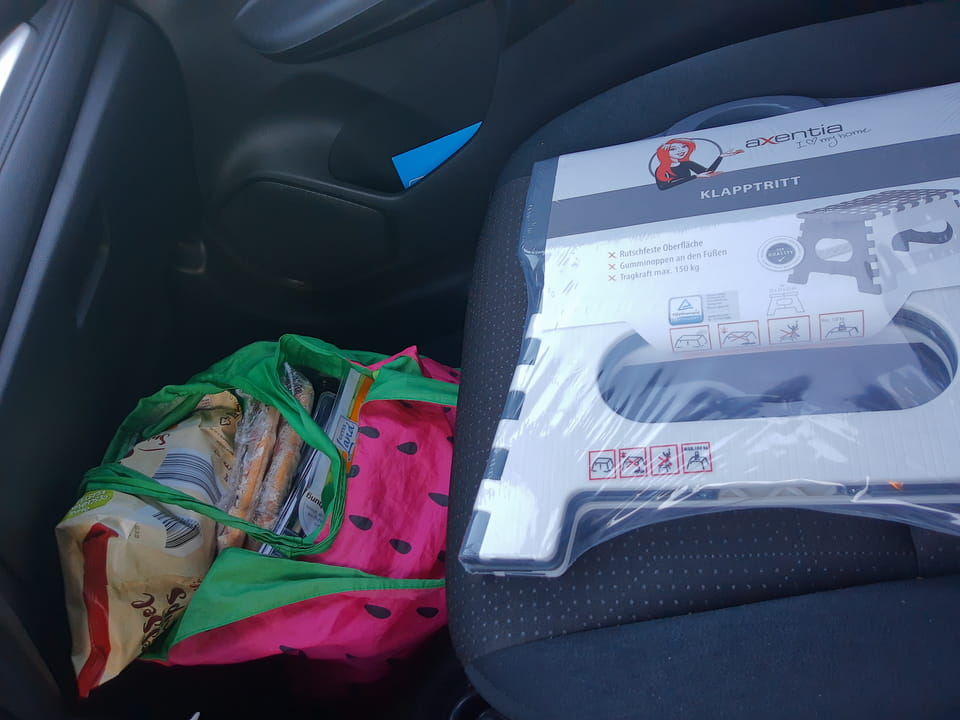 Auf dem Kopf kann ich das Teil auch nicht montieren, weil der Hut und Kopf zu viel Blickfeld auf die Straße einnehmen. Alles nicht so einfach und keine schnellen Lösungen parat. Abends erst mal ein Einkauf bei Netto.