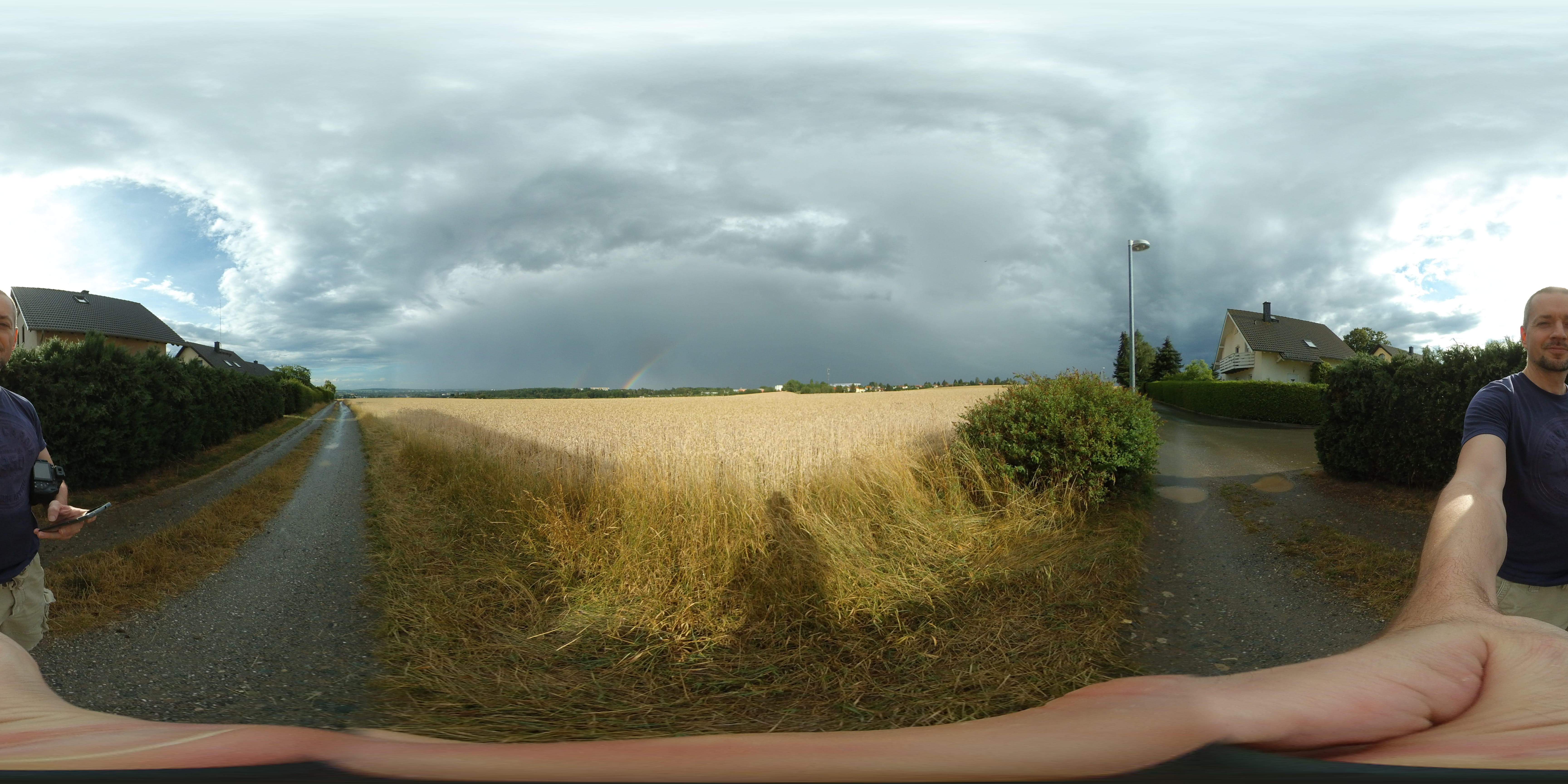 Entspannter Sonntag mit Sommergwittern. Ein Regenbogen sprang auch mal raus. Ich testete etwas die Mi Sphere, die trotz U3 microSD Karte wegen langsamem Speed murrt und auch abbricht.